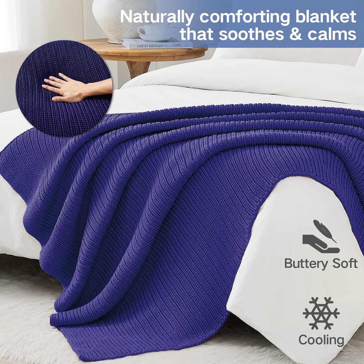 Guohaoi Knitted Weighted Blanket(Dark Blue 50''X60'' 5Lbs),Home D Cor Cooling Throw Blanket For Hot Sleepers,Hand Made Chunky K