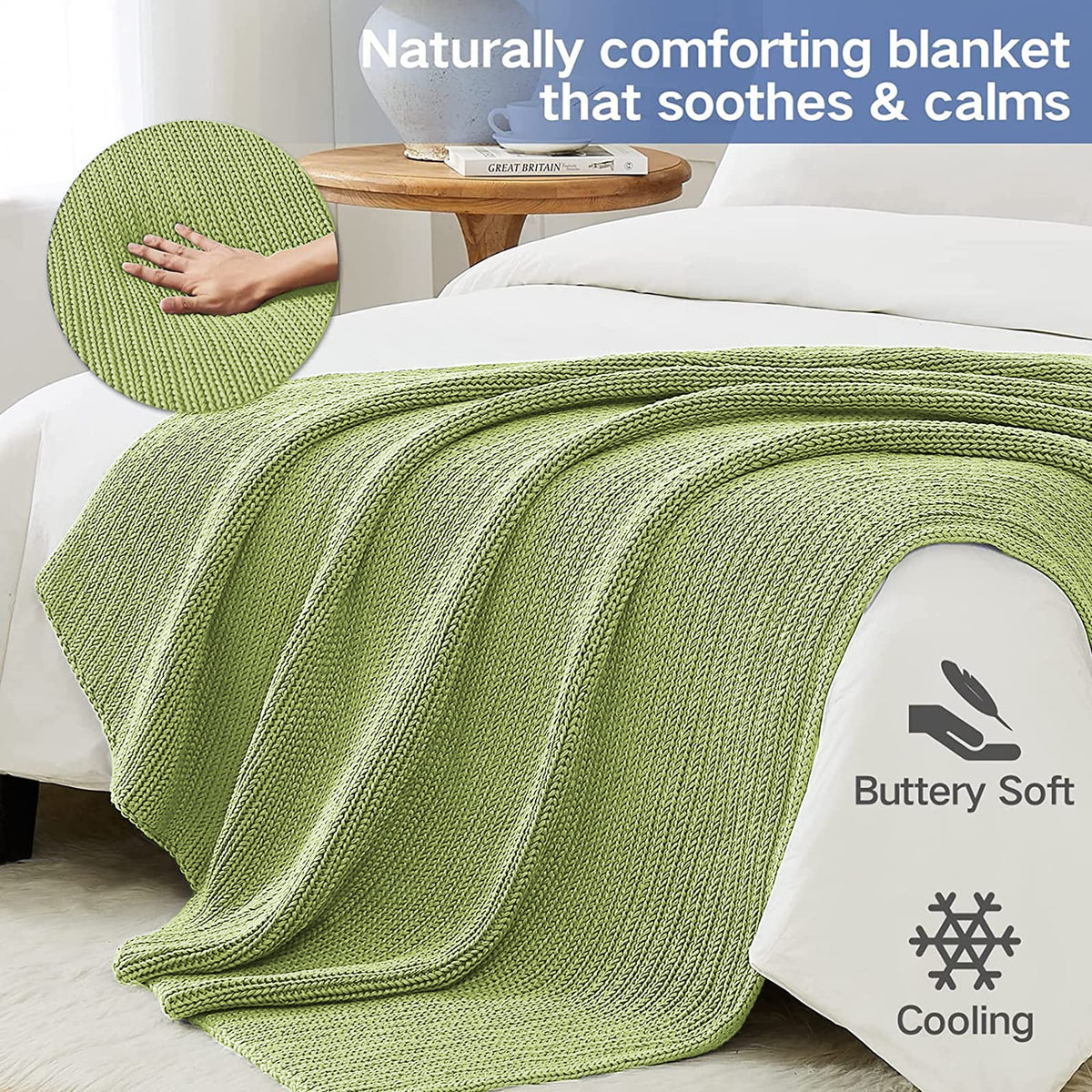 Guohaoi Knitted Weighted Blanket(Light Green 50''X60'' 5Lbs),Home D Cor Cooling Throw Blanket For Hot Sleepers,Hand Made Chunky