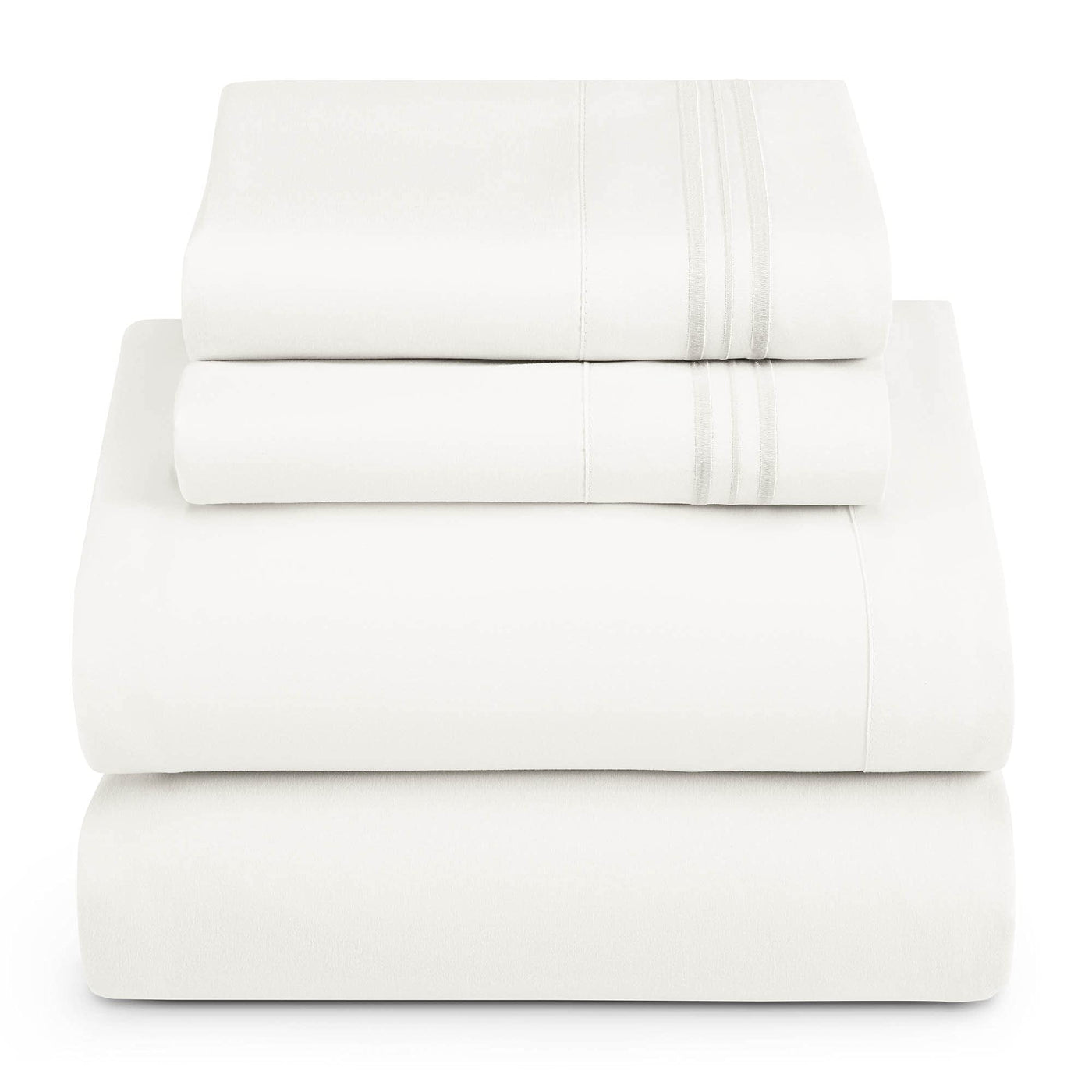 Hearth & Harbor King Size Sheets - 4 Piece Bed Sheet Set, Hotel Luxury Double Brushed Bed Sheets - Extra Soft Bedding Sheets & Pillowcases, King, White