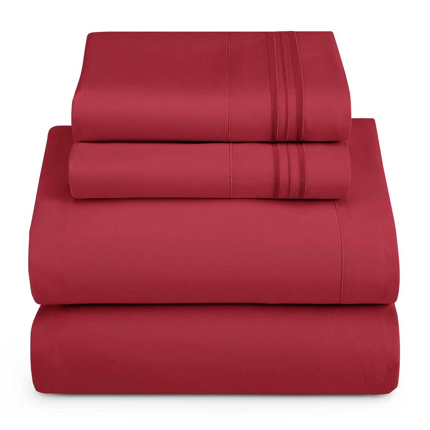 Hearth & Harbor Queen Size Sheets - 4 Piece Bed Sheet Set, Hotel Luxury Double Brushed Bed Sheets - Extra Soft Bedding Sheets & Pillowcases, Queen, Burgundy