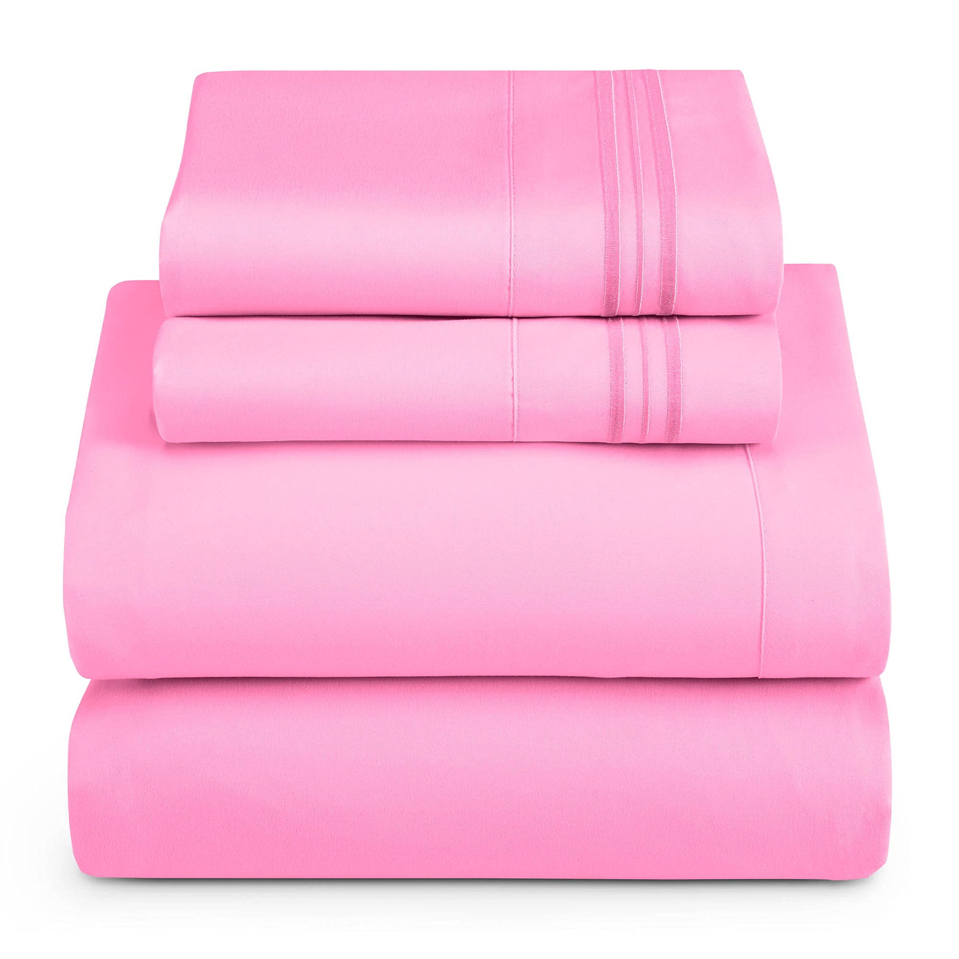 Hearth & Harbor Twin Size Sheets - 3 Piece Bed Sheet Set, Hotel Luxury Double Brushed Bed Sheets - Extra Soft Bedding Sheets & Pillowcases, Twin, Light Pink