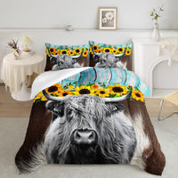 Highland Cattle Flower Comforter Set Twin Size Bull Cattle Bedding Set Western Funny Animal Bedding Set Wildlife Farmhouse Cow Q