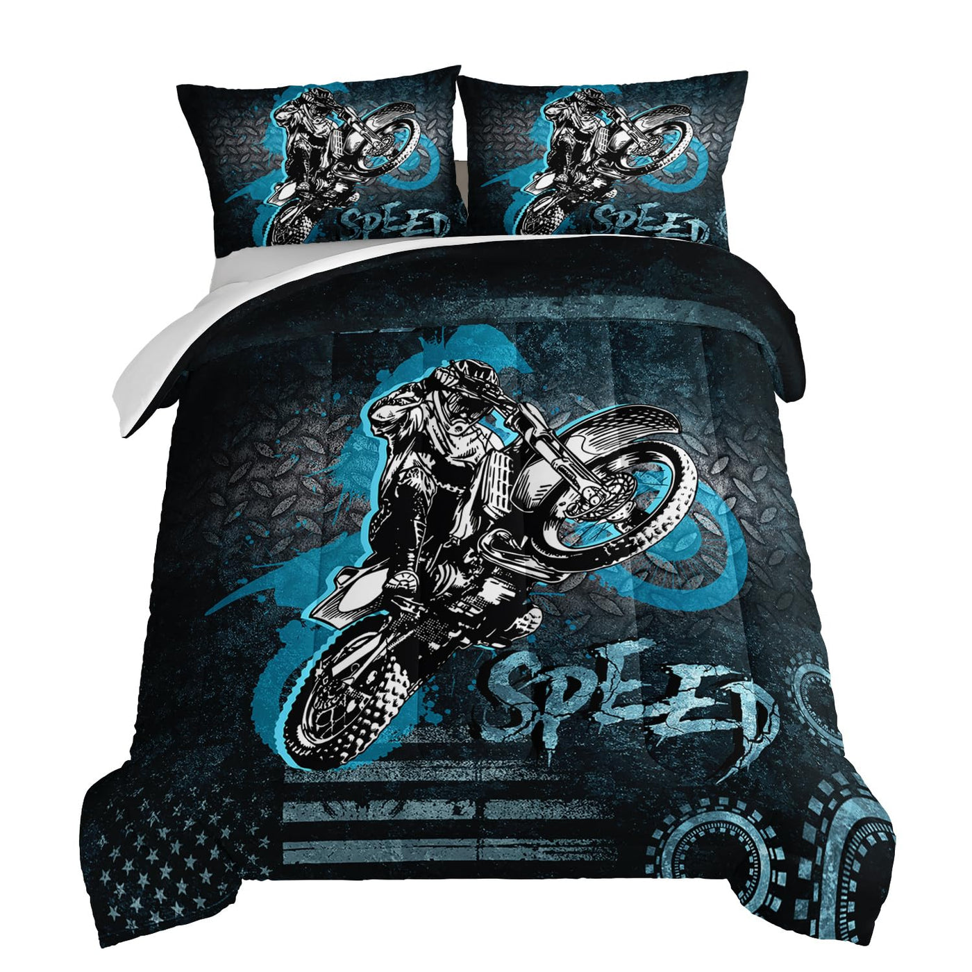Hosima Dirt Bike Comforter Motocross Rider Bedding Set For Race Car Bed,American Flag Motorbike Twin Comforter Extreme Sport Bed