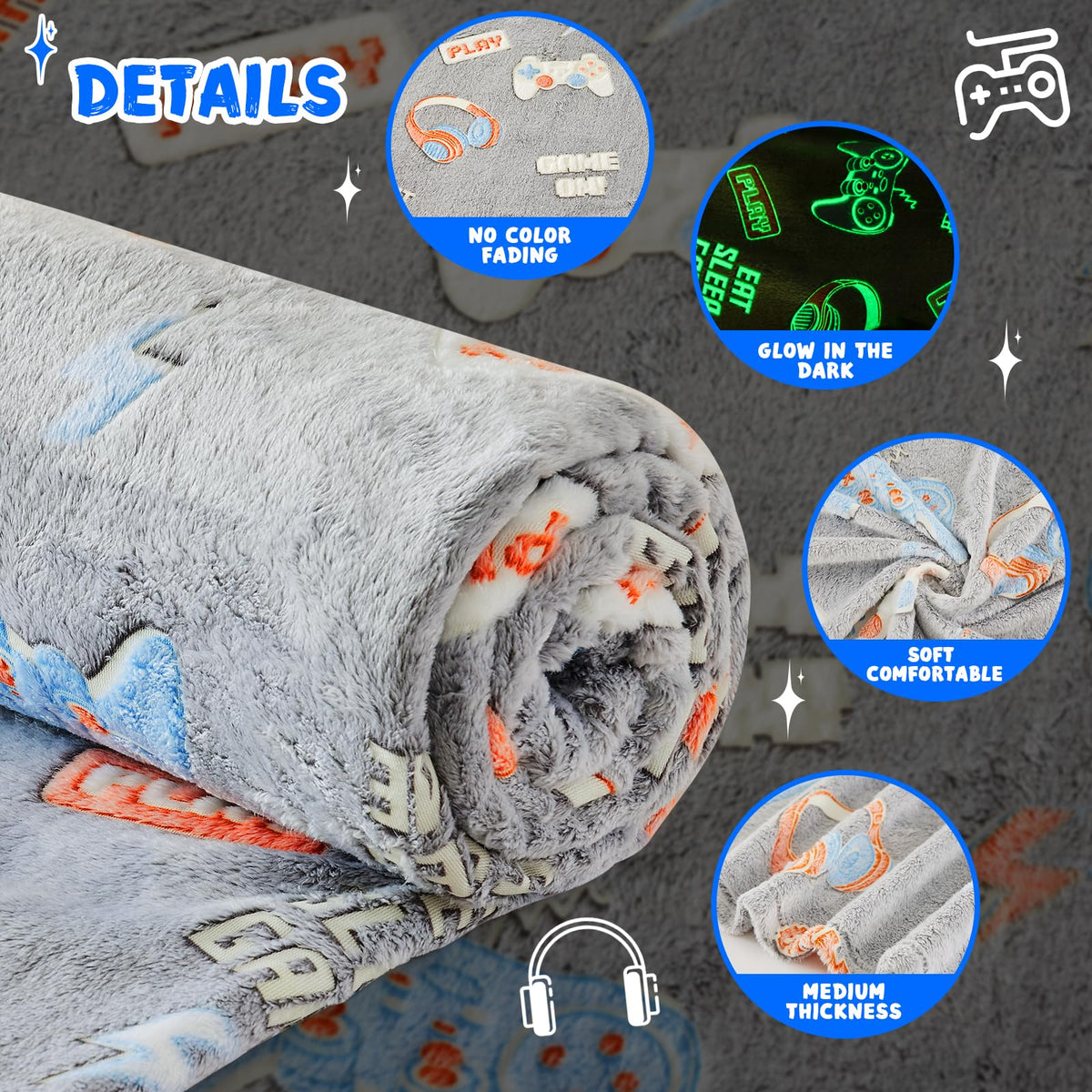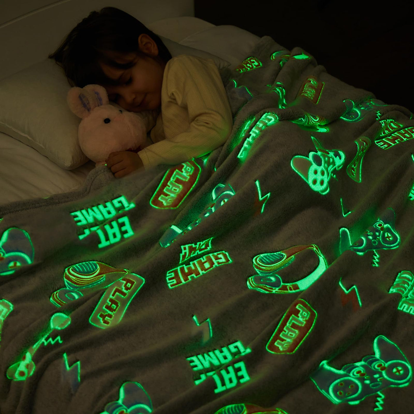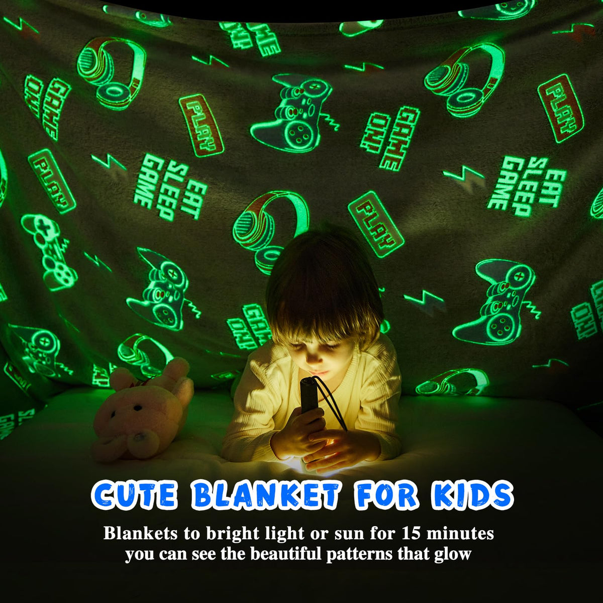 The Best Game Gift Toys For Kids: Our Game Glow In The Dark Blanket Is The Best Choice Of Gift For Kids, Give Your Kids An Unforgettable Surprise At Christmas, Birthday, Halloween Easter And Thanksgiving! Multifunctional Uses: Indoors Can Be Used As A Sofa Blanket And Bed Sheet To Add Home Decoration, Outdoors Can Add Atmosphere For Camping And Party Etc, The Luminous Decor Roblox Fortnite Gamer Pattern Adds A Touch Of Magic To Any Environment. Good Looking Gaming Controller Pattern: Kids Love Game, Our Glow In Dark Blanket Has A Mesmerising Glow Gaming Controller That Glows In The Dark, Creating A Magical And Enchanting Ambience In Any Room, Allowing Your Child To Enter Into A Wonderful Dream World And Get A Comfortable Night'S Sleep Comfortable And Soft Fabric: Skin-Friendly Flannel Makes Your Child'S Skin Feel Delicate And Smooth Glow In The Dark: Glow In Dark Gaming Are Sure To Please Your Child Machine Washable And Hard-Wearing: Can Be Machine Washed Again And Again