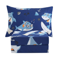 Jsd Blue Shark Surfing Kids Sheet Set Twin Size, 3 Piece Nautical Printed Microfiber Sheets Deep Pocket