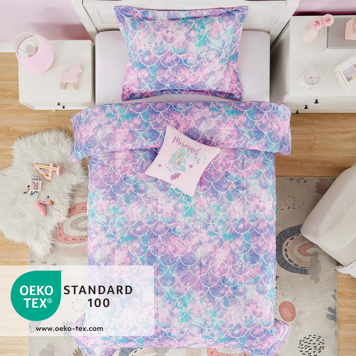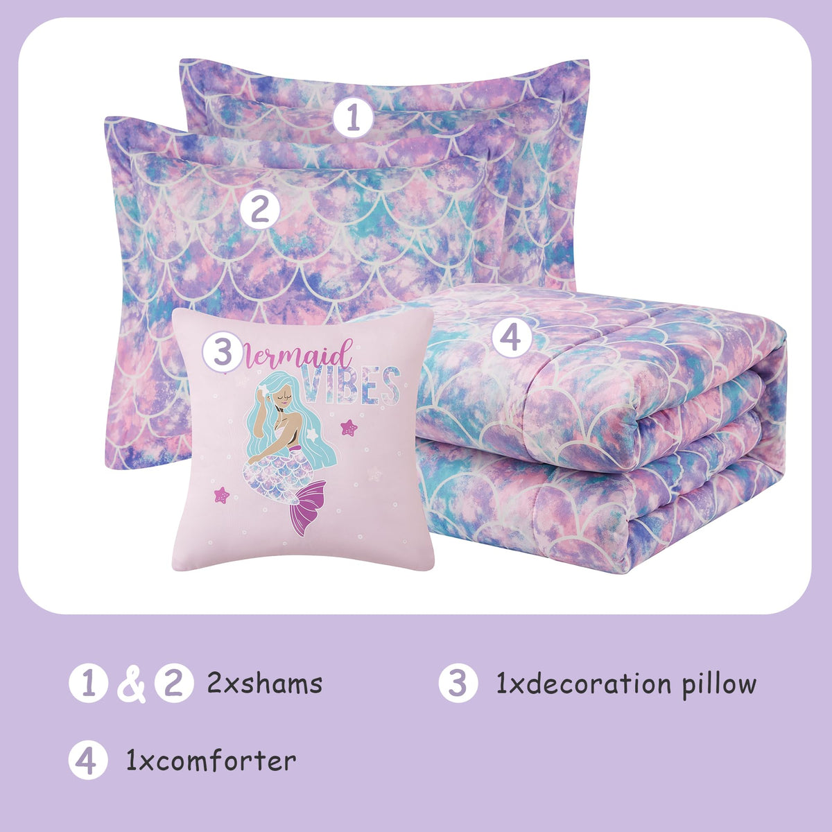 Kaleido Space Kaleidospace Pink Comforter Set Full For Kids, Glow In The Dark Mermaid Bedding Sets With Decor Pillow, 4 Pieces G