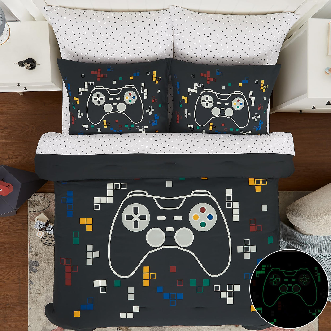 Kaleidospace Gamer Bedding Sets For Boys Girls, Glow In The Dark 7 Piece Bed In A Bag Full, Ultra Soft Microfiber Kids Bedding F