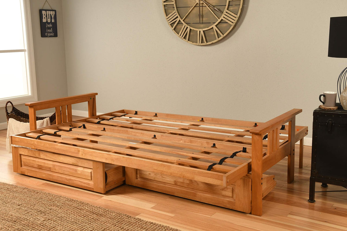 The Monterey Futon Features A Classic Hardwood Frame With Mission Style Arms. This Unique And Versatile Full-Size Futon Sofa Easily Converts To A Queen-Size Bed. This Multifunctional Piece Of Furniture Can Find A Home In Just About Any Type Of Room.