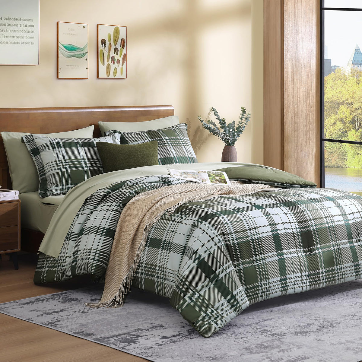 Q: Does the comforter have any special features?A: Yes, the comforter features a plaid design that adds a classic touch to your bedroom. Additionally, the fitted sheet is designed with a storage pocket for convenience.