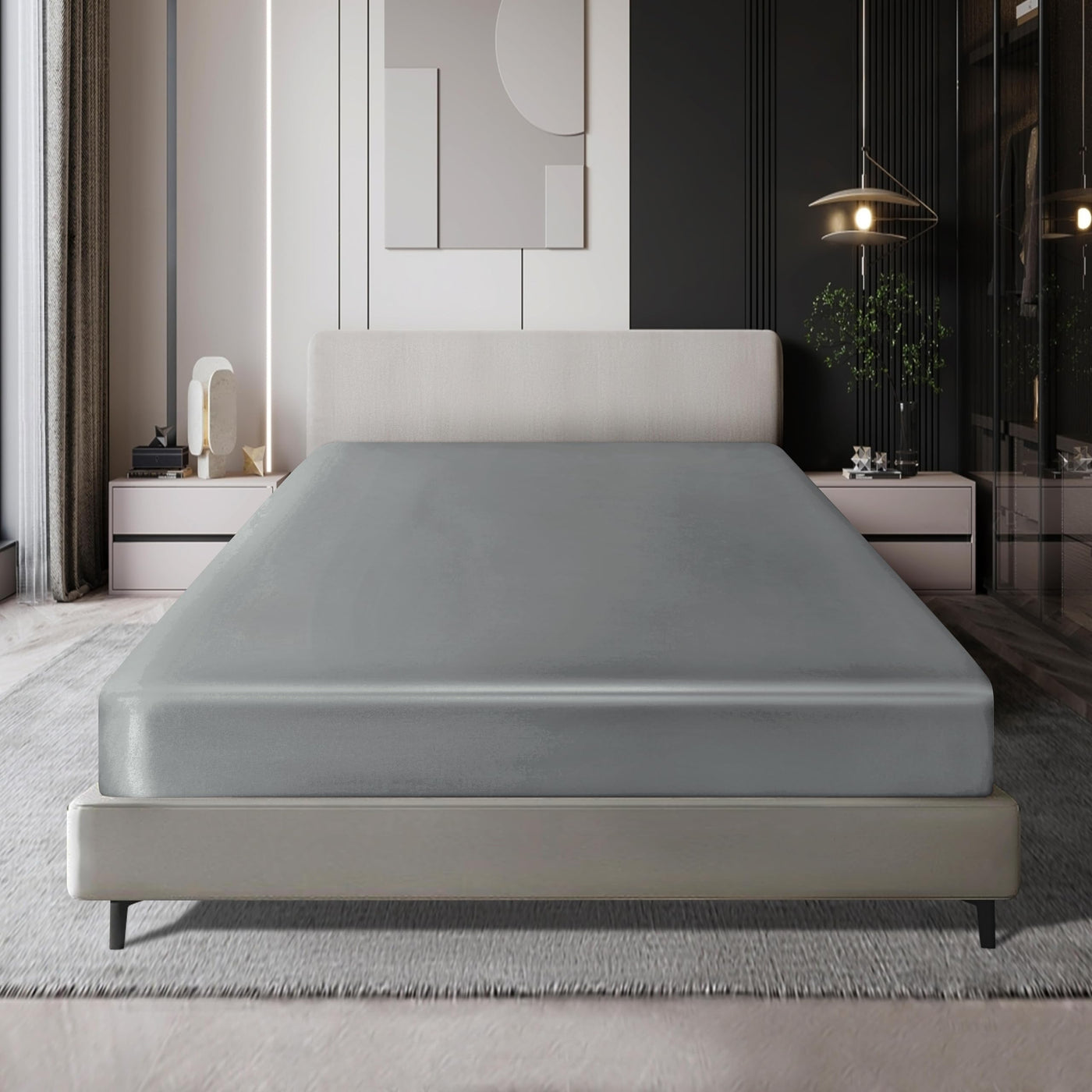 Milvowoc Twin Satin Fitted Sheet, Light Gray Fitted Sheet Only Soft Bottom Fitted Sheet, Fitted Bed Sheets - 1 Piece