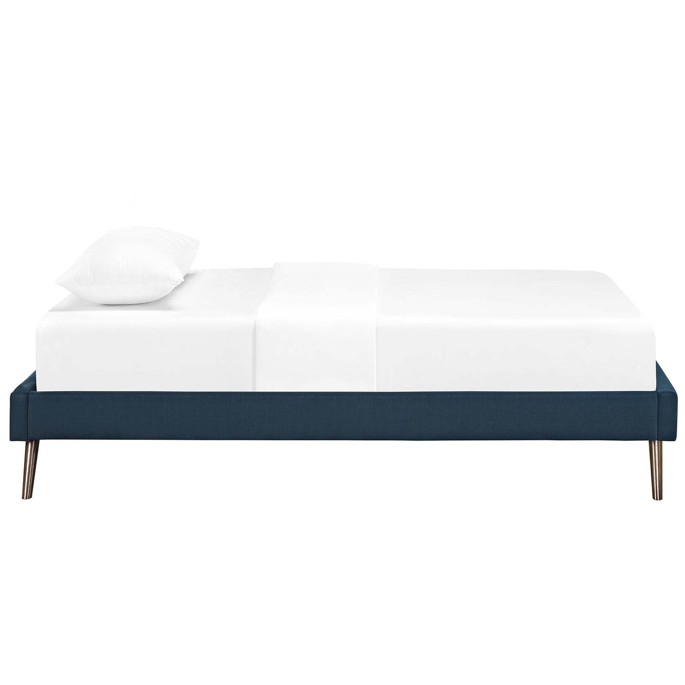 Accelerate Your Bedroom Decor With The Loryn Platform Bed. Made With A Solid Wood Frame Upholstered In Polyester Fabric, Loryn Features Tapered Wood Legs, Plastic Foot Glides, Ten Sturdy Wood Slats With A Centered Supporting Bar And Two Support Legs For Enhanced Stability. Due To The Wooden Slat Support System, The Use Of A Box Spring Is Unnecessary. Loryn Supports Memory Foam Mattresses Such As Our Aveline Series, And Is Compatible With One Of Our Headboard Styles: Jessamine, Terisa, Laura, Phoebe, Camille, And Josie. Perfect For Mid-Century Modern, Minimalist And Contemporary Bedrooms. Mattress Not Included.