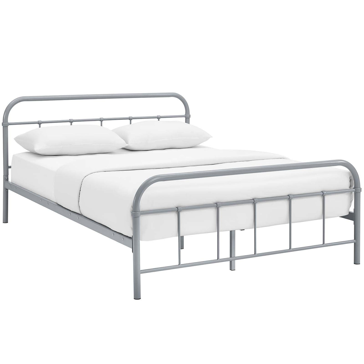 Modway Maisie Steel Metal Farmhouse Platform Queen Bed Frame With Headboard In Gray