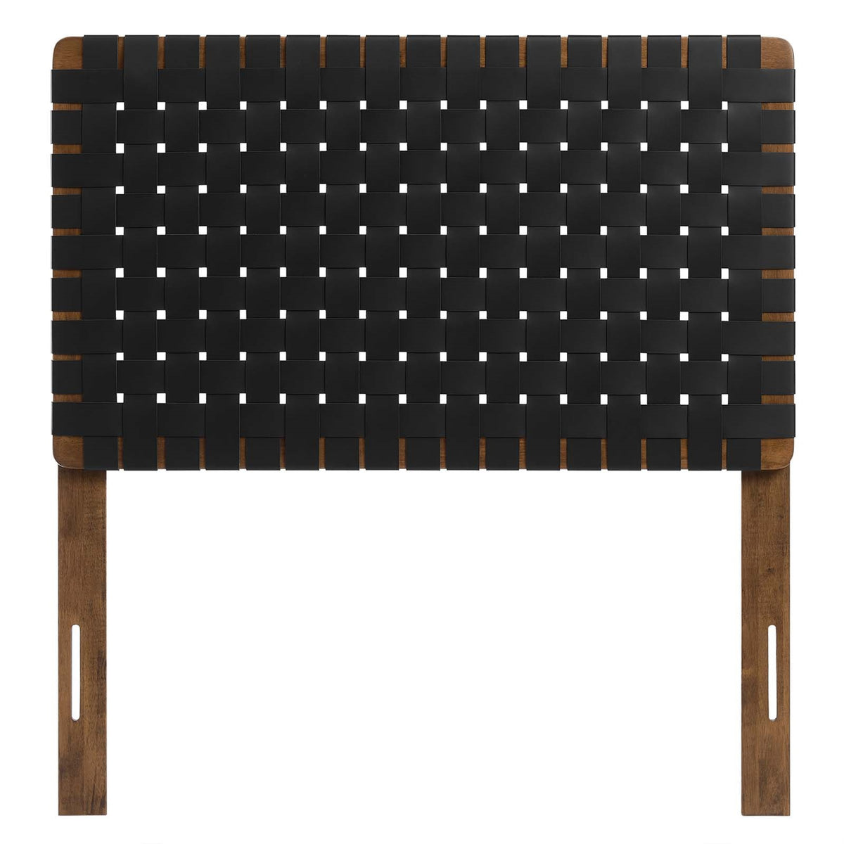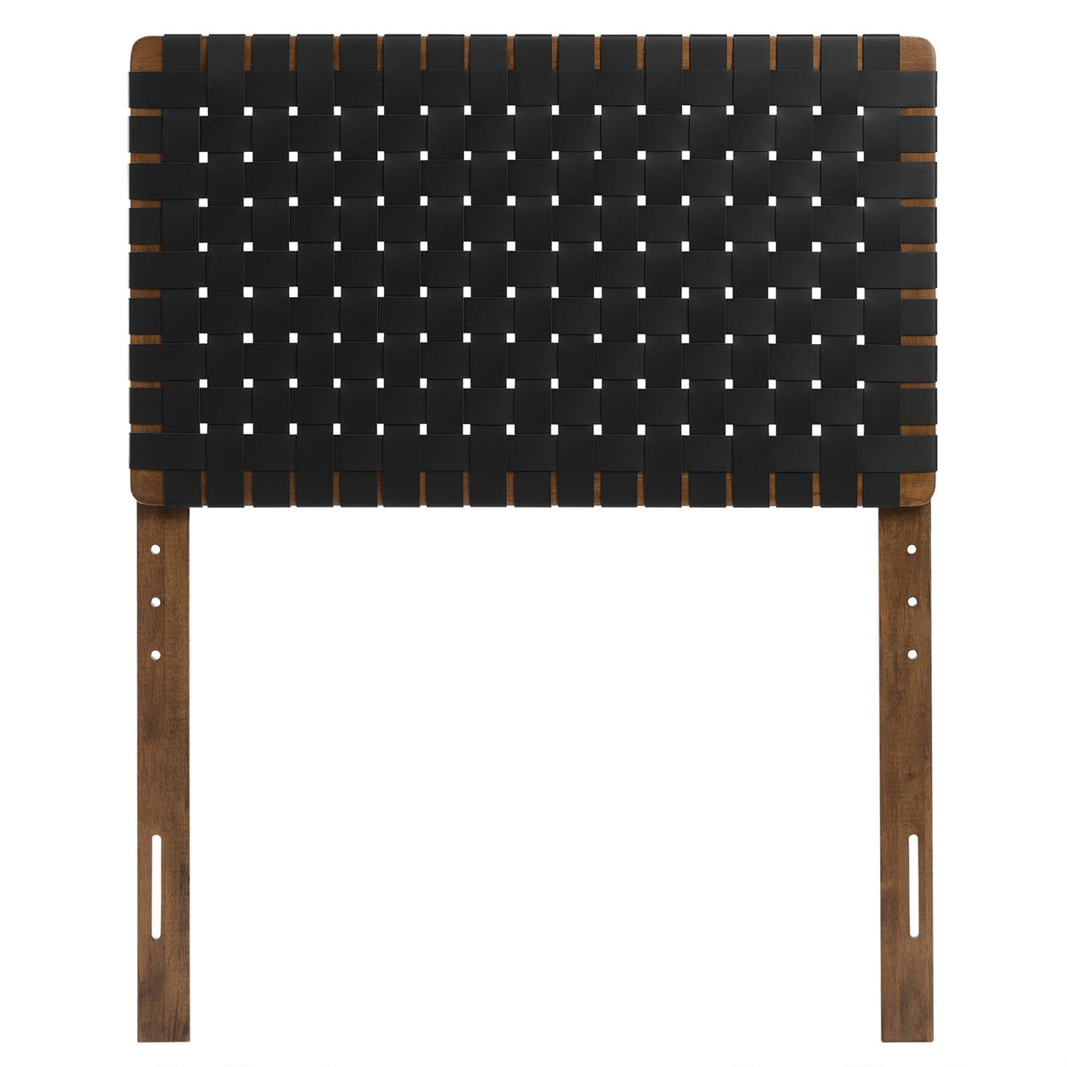 Modway Sparta Vegan Leather Weave Twin Headboard in Walnut Black Faux Leather Twin Headboard Only, Height Adjustable Headboard, Freestanding Headboard for Children's Bedroom or College Dorm
