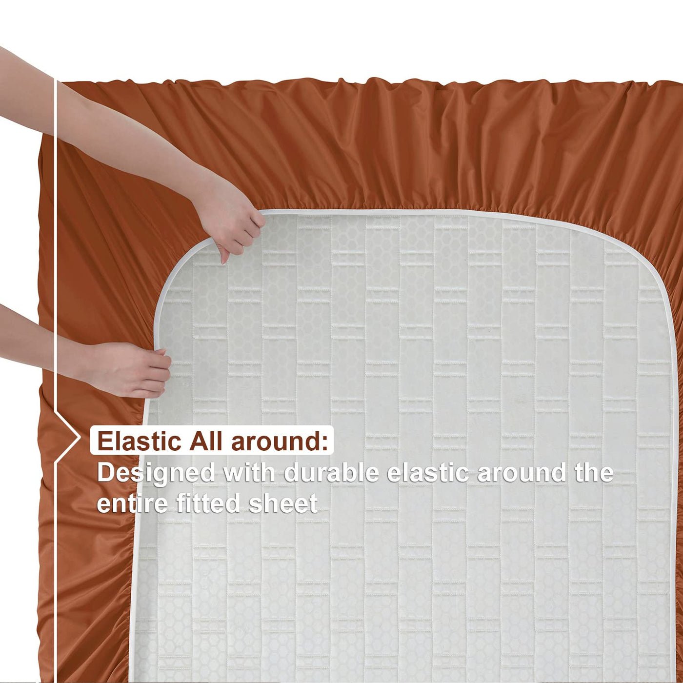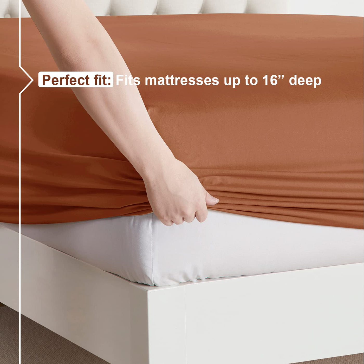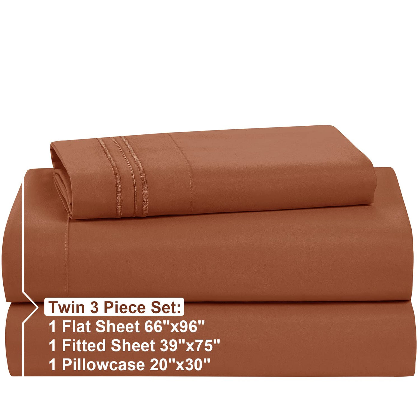 Nestl Kids Deep Pocket Twin Sheets 3 Piece Twin Size Bed Sheets With Fitted Sheet, Flat Sheet, Pillow Case - Extra Soft Bedsheet Set With Deep Pockets For Twin Size - Rust Sienna