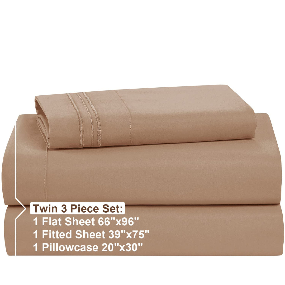 Nestl Kids Deep Pocket Twin Sheets - 3 Piece Twin Size Bed Sheets With Fitted Sheet, Flat Sheet, Pillow Case - Extra Soft Bedsheet Set With Deep Pockets For Twin Size - Taupe