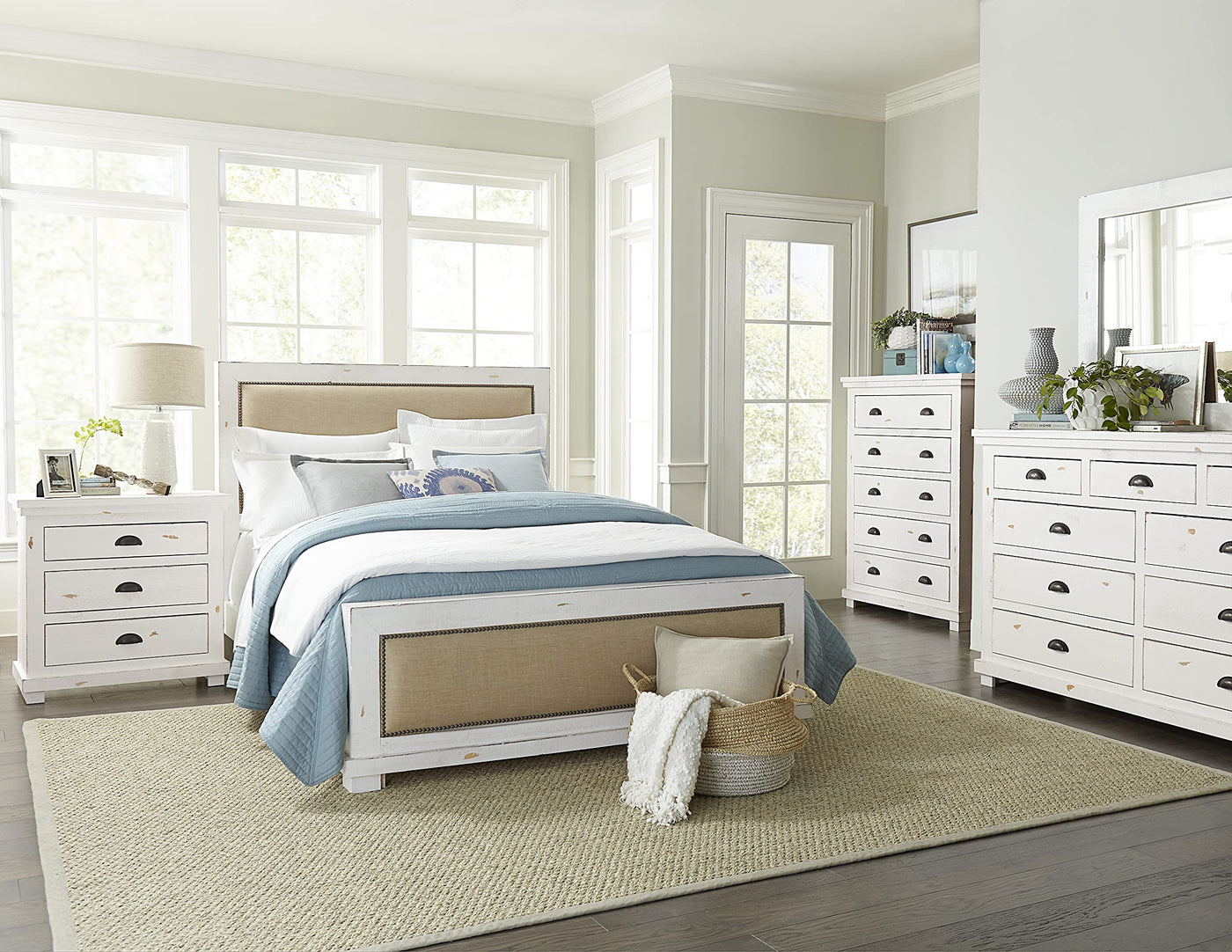 An Upholstered Headboard Presents A More Feminine Look While The Thick Tops And Parting Rails Allow You To Hone In On It’S Substantial Elements. Mitered Framed Upholstered Headboard Features A Linen-Look Trimmed In Nail Head. Fabric Content For Upholstered Bed Is 100% Polyester For Easy Clean-Ability And Also Has A Knit Backing.