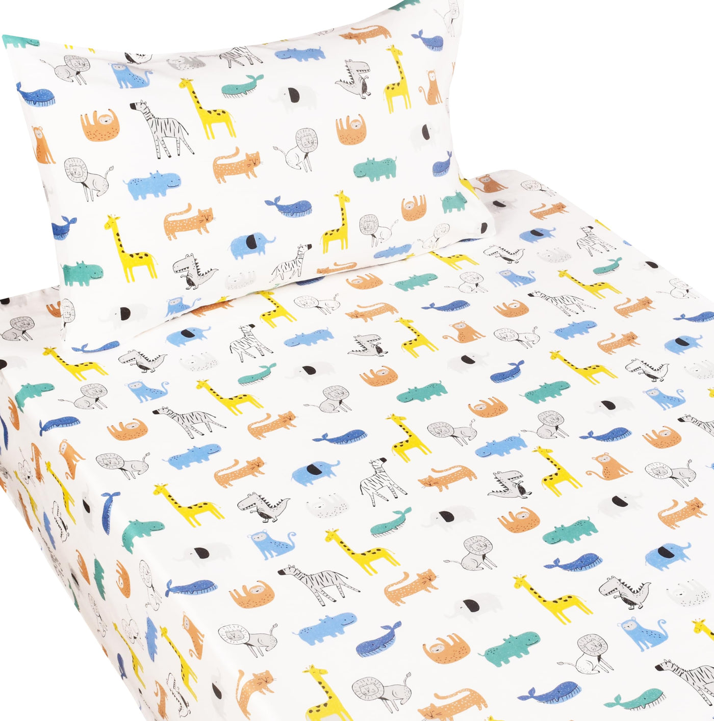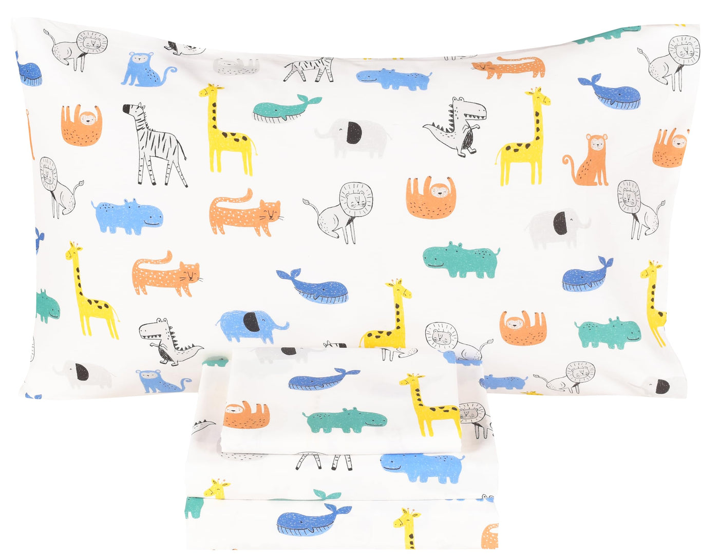 Scientific Sleep Jungle Animals Whale Zebra Monkey Tiger 100% Cotton 3 Pcs Twin Bed Sheet Set Kids Toddler Teen, Flat Sheet & Fi