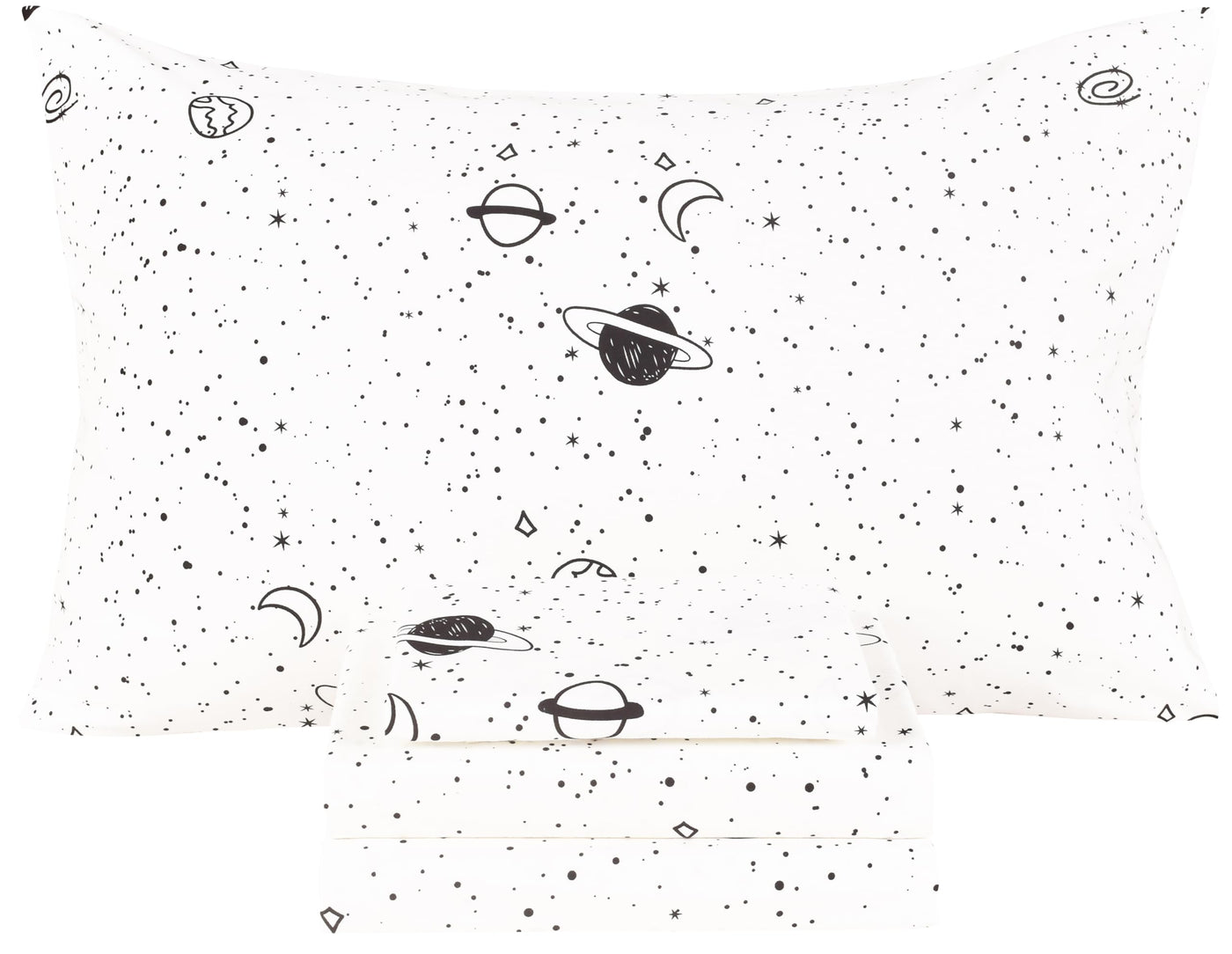 Scientific Sleep Starry Galaxy Solar System 100% Cotton 4 Pcs Queen Bed Sheet Set Kids Toddler Teen, Flat Sheet & Fitted Sheet &