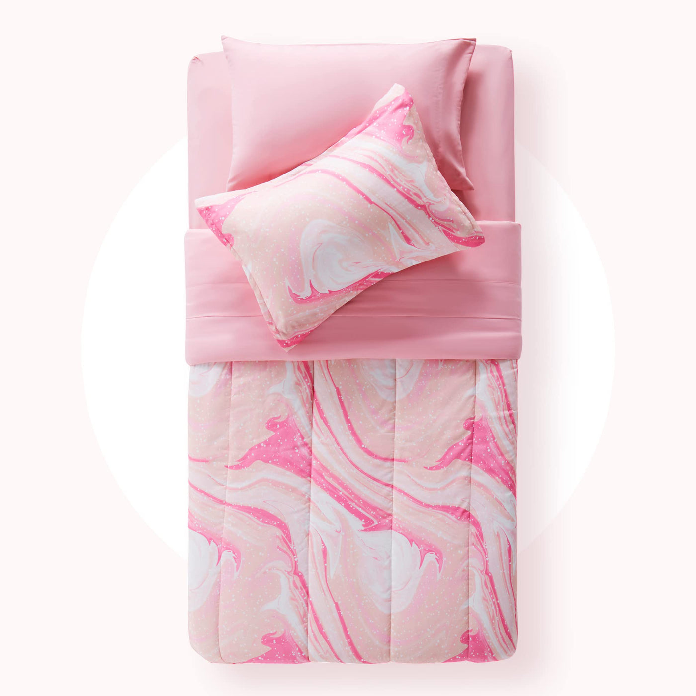 Q: How do I care for the SLEEP ZONE Kids Bedding Comforter Set?A: For best care, machine wash the comforter set in cold water and tumble dry on low. Avoid using bleach to maintain the vibrant colors and fabric integrity.