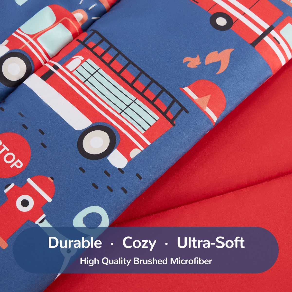 Q: What makes this bedding set a good choice for kids?A: The SLEEP ZONE Kids Twin Bedding Comforter Set features a cute fire truck design that attracts children's attention and inspires their imagination. Additionally, its ultra-soft and fluffy materials provide a comfortable sleeping experience, perfect for kids.