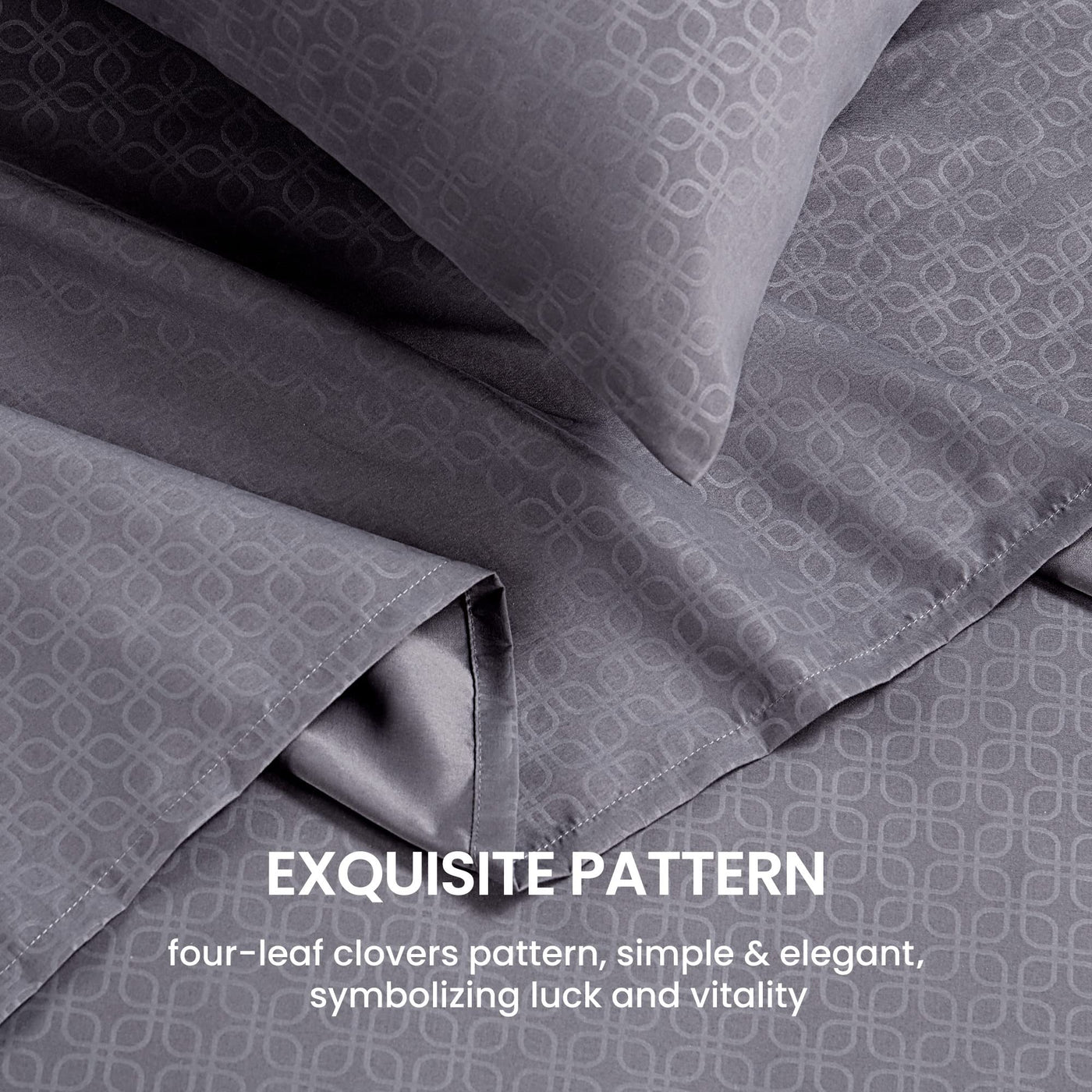 SLEEP ZONE Luxury Embossed Twin Bed Sheets Set for Kids, Four-Leaf Clover Pattern Sheet & Pillowcase Sets 3 Piece - Super Soft, Wrinkle Free, Fade Resistant, Deep Pocket 16' (Gray, Twin)