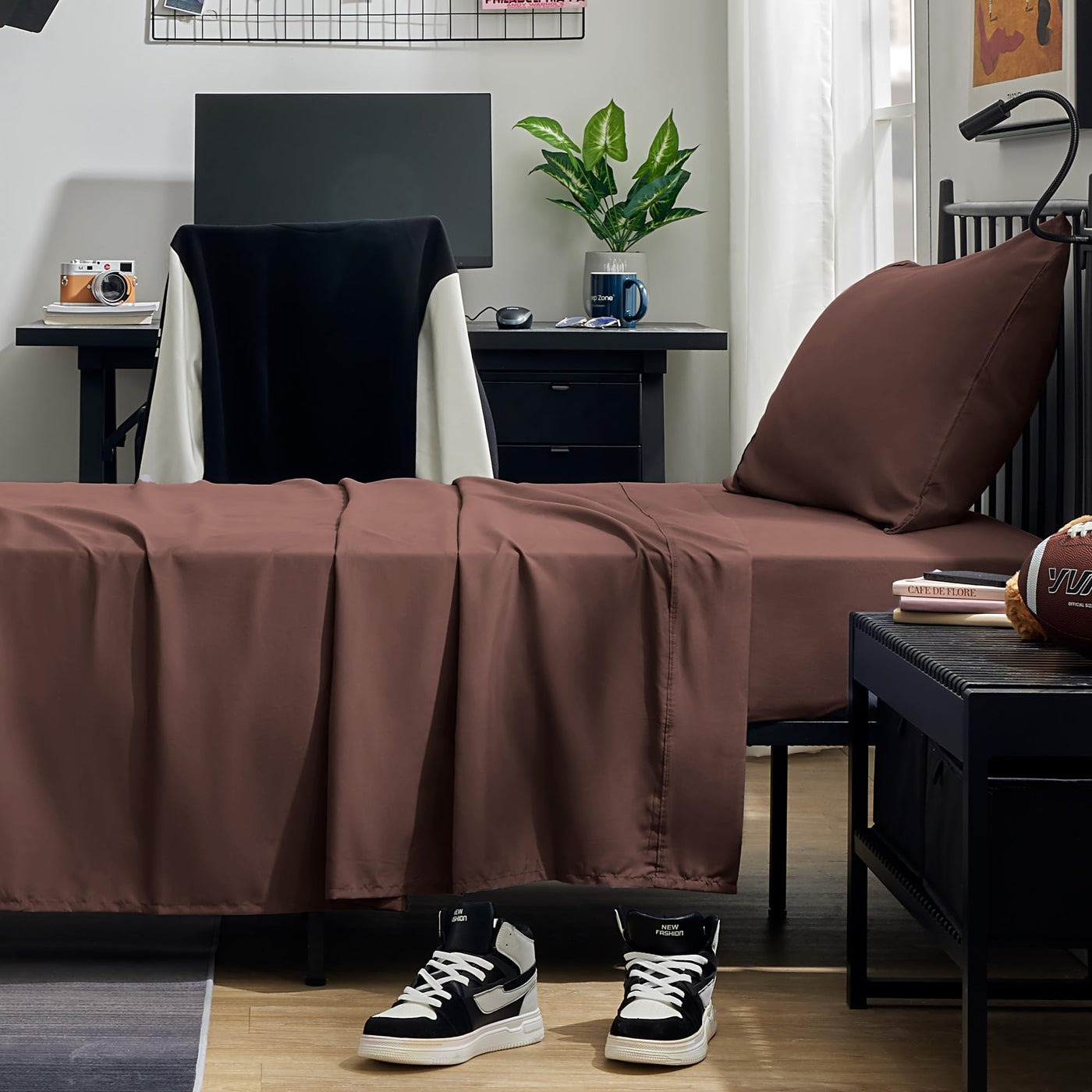 SLEEP ZONE Super Soft Cooling Twin Bed Sheets Set for Kids 3 Piece - Easy Care Fitted Flat Sheet & Pillowcase Sets - Wrinkle Free, Fade Resistant, Deep Pocket 16' (Brown, Twin)