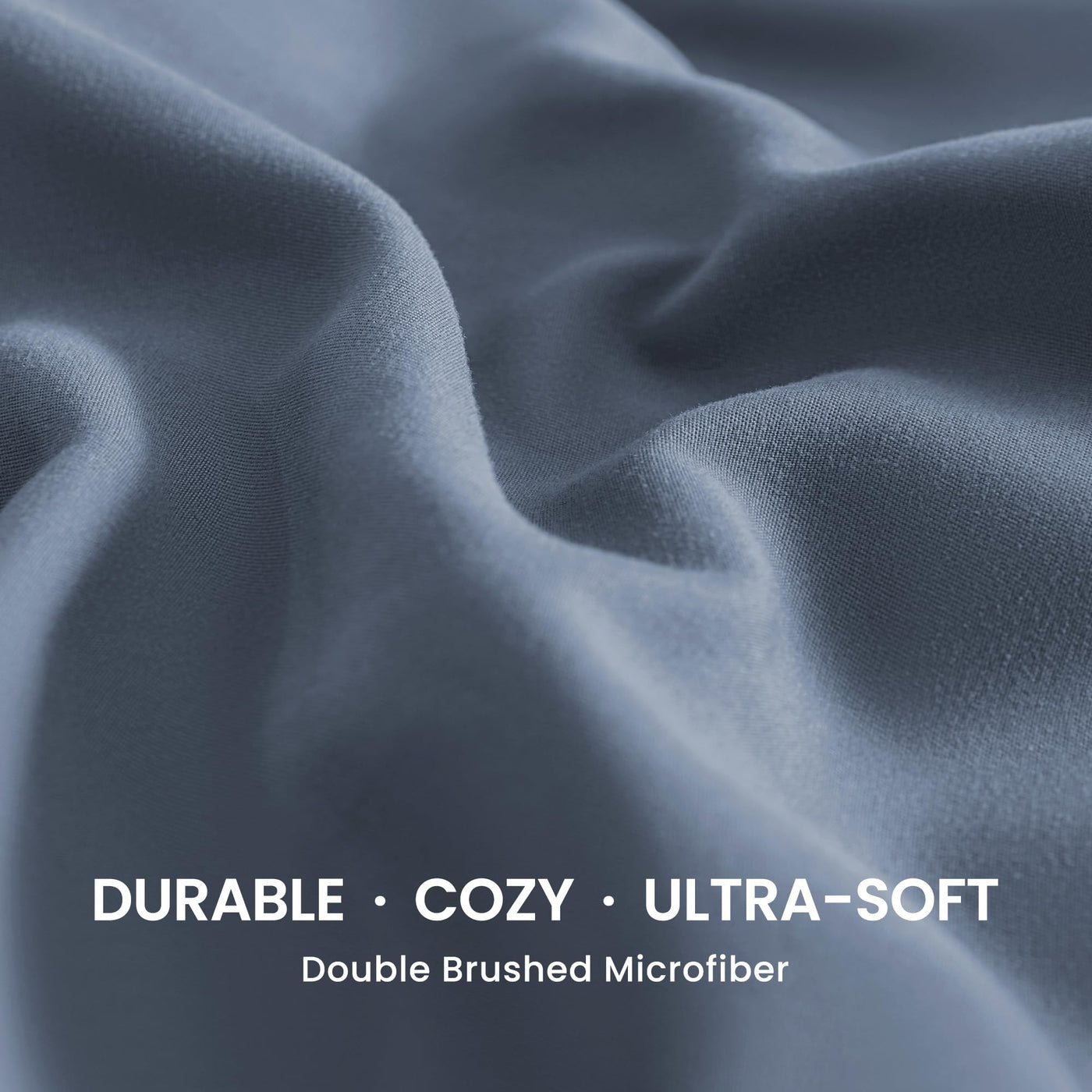 Sleep Zone Nanotex Super Soft Cooling Twin Bed Sheets Set For Kids 3 Piece - Easy Care Fitted Flat Sheet & Pillowcase Sets - Wrinkle Free, Fade Resistant, Deep Pocket 16' (Flint Blue, Twin)