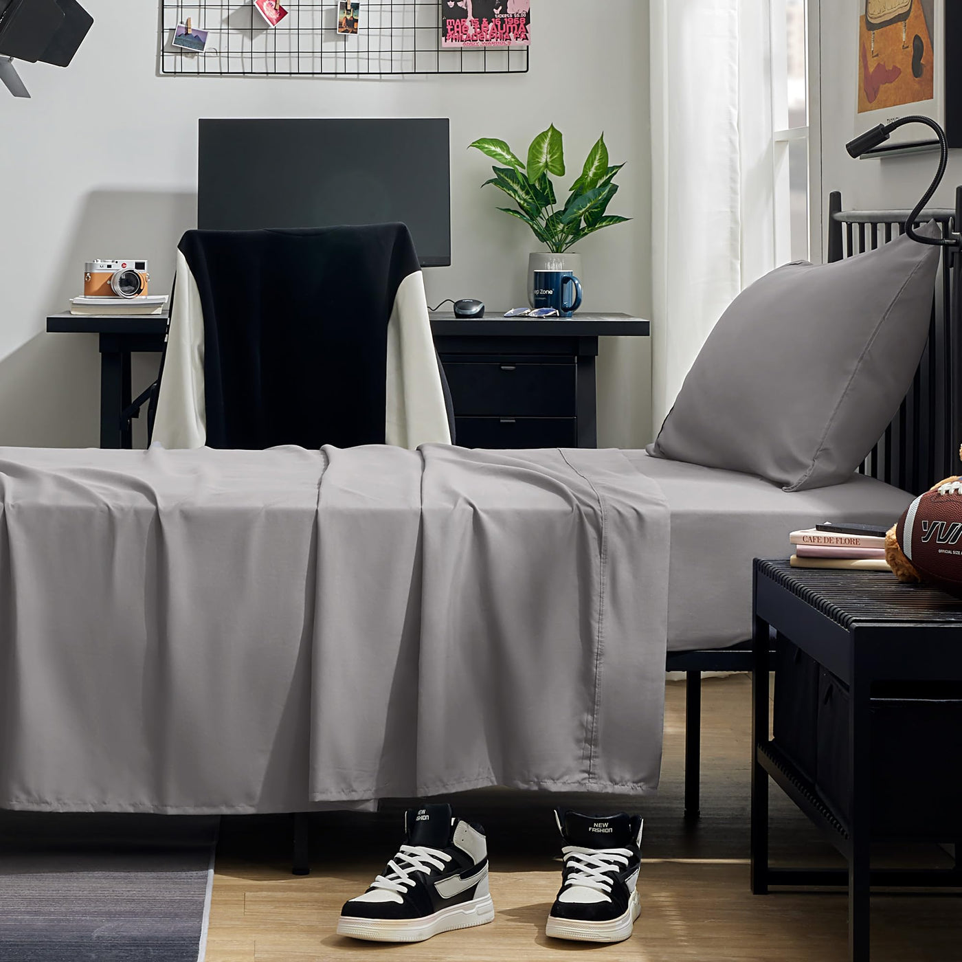 Sleep Zone Nanotex Super Soft Cooling Twin Bed Sheets Set For Kids 3 Piece - Easy Care Fitted Flat Sheet & Pillowcase Sets - Wrinkle Free, Fade Resistant, Deep Pocket 16' (Gull Gray, Twin)