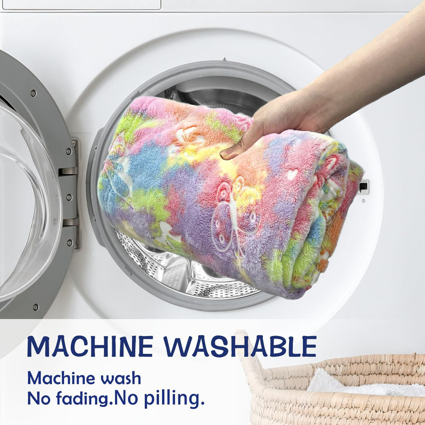 Q: How do I care for the blanket?A: Caring for the SOCHOW Butterfly Glow in The Dark Blanket is easy. It is machine washable in cold water and can be tumble dried on low temperature. The blanket is designed to resist shrinking, shedding, and fading, maintaining its vibrant glow and softness over time.