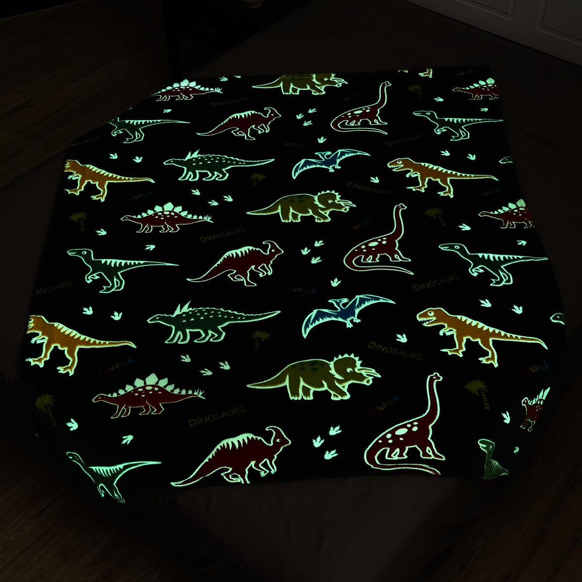 Sochow Glow In The Dark Dinosaur Blanket For Sons Daughters, Toys For 3-10 Year Old Preteen Teen Birthday Presents, Soft Cozy Fl