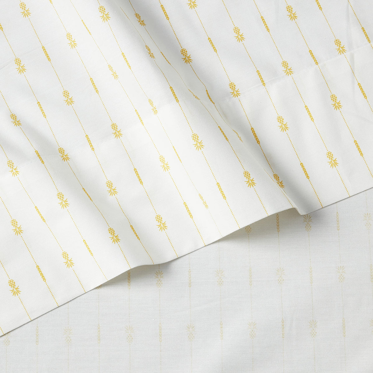 Add A Tropical Touch To Your Bedding Ensemble With The Stylish Tommy Bahama Pineapple Pinstripe Sheet Set. Decked Out In A Pastel Yellow Pineapple Striped Pattern On A Field Of White, This Cotton Percale Sheet Set Will Add A Layer Of Comfort To Your Bed. Twin Sheet Set Includes: One Flat Sheet: (96''L X 66''W), One Fitted Sheet (75''L X 39'') And One Pillowcase (20''L X 30''W). Full Sheet Set Includes: One Flat Sheet: (96''L X 81''W), One Fitted Sheet (75''L X 54''W) And Two Pillowcases (20''L X 30''W). Queen Sheet Set Includes: One Flat Sheet: (102''L X 90''W), One Fitted Sheet (80''L X 60''W) And Two Pillowcases (20''L X 30''W). King Sheet Set Includes: One Flat Sheet: (102''L X 108''W), One Fitted Sheet (80''L X 78''W) And Two Pillowcases (20''L X 40''W). California King Sheet Set Includes: One Flat Sheet: (102''L X 108''W), One Fitted Sheet (84''L X 72''W) And Two Pillowcases (20''L X 40''W). Fully Elasticized Fitted Sheet Fits Mattresses Up To 15'' Deep. Ensemble Is Machine Washable For Easy Care.