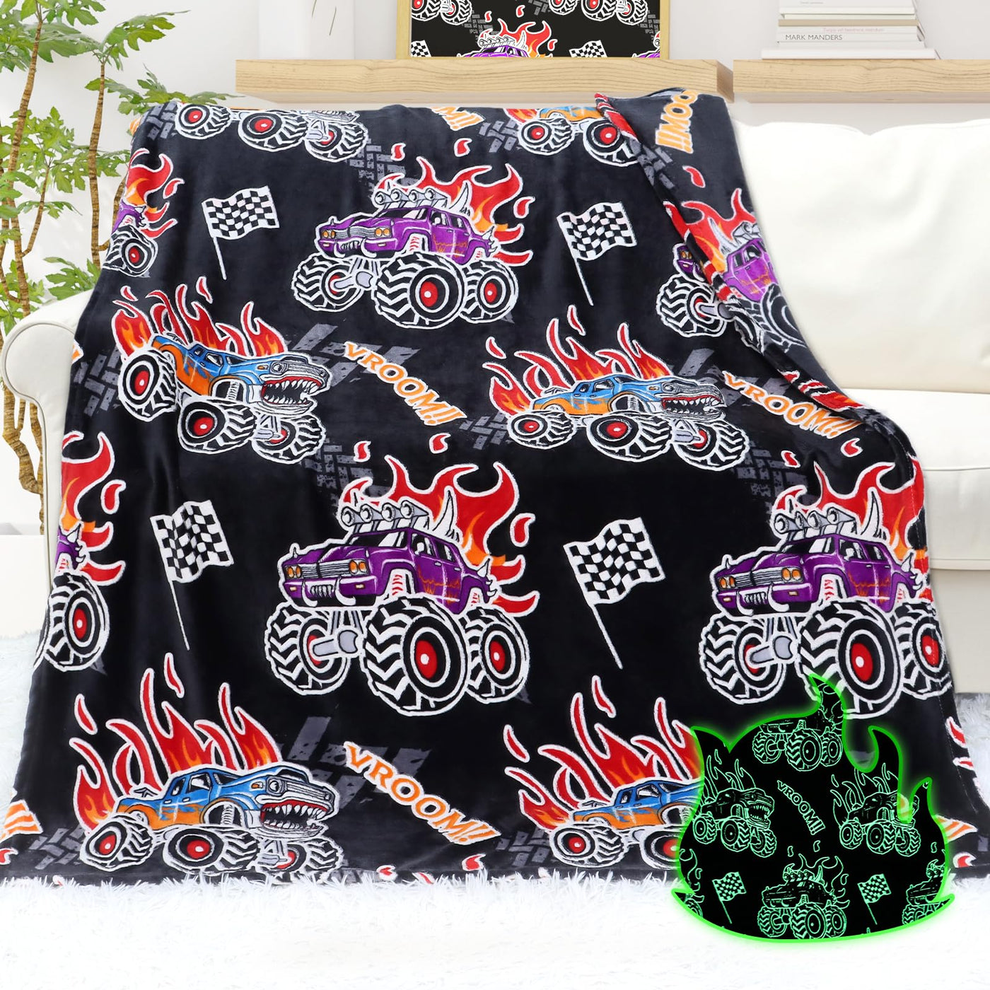 Truck Blanket Glow In The Dark Blanket For Boys Soft Throw Blanket Kids Glowing Excavator Construction Blankets Tractor Cars Roo
