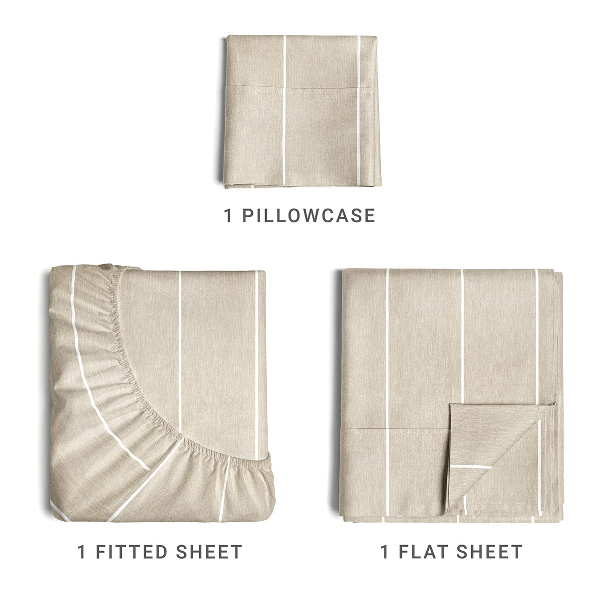 Twin Size 3 Piece Bedding Sheet Set - Breathable & Cooling Bed Sheets Hotel Luxury Bed Sheets For Boys, Girls, Kids & Teens - Deep Pockets - Easy-Fit - Soft & Wrinkle Free - Beige Stripes Oeko-Tex Set