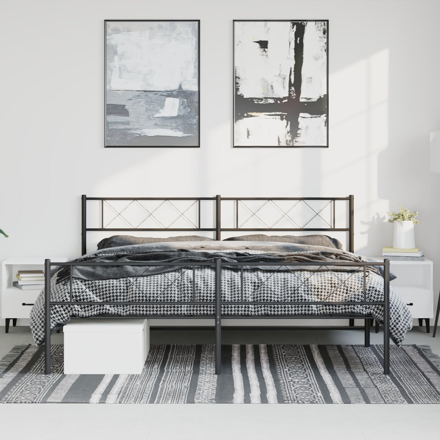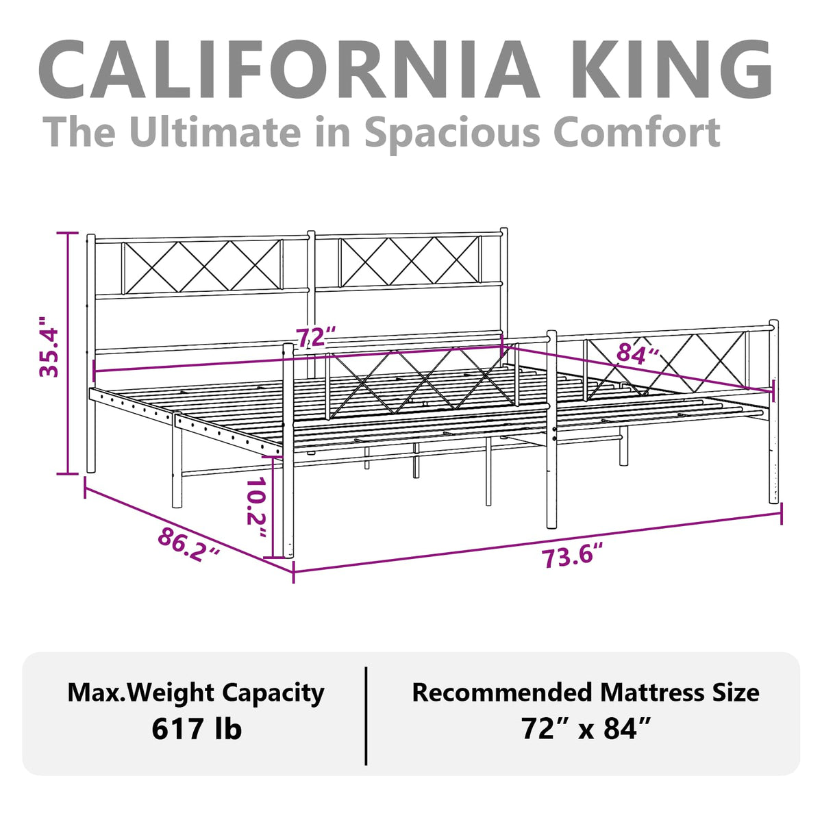 vidaXL 12'' California King Metal Bed Frames with Headboard and Footboard, Platform Bed Frame with Strong Metal Slats Support, Under Bed Storage, Noise Free, Black, Without Mattress
