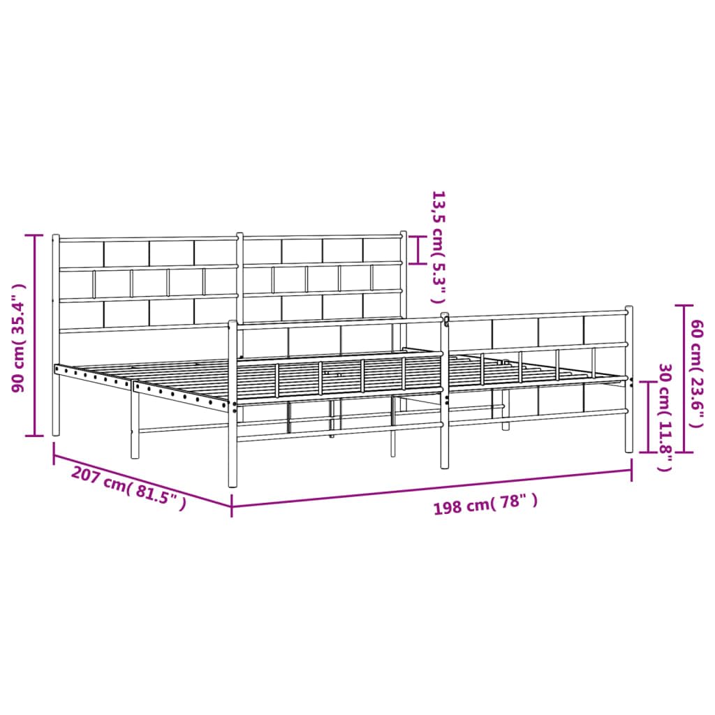 vidaXL 12-Inch Black Metal King Bed Frame with Headboard & Footboard, Heavy-Duty Slats Support with Under-Bed Storage for Modern Bedroom, No Box Spring Needed & Easy Assembly, No Mattress