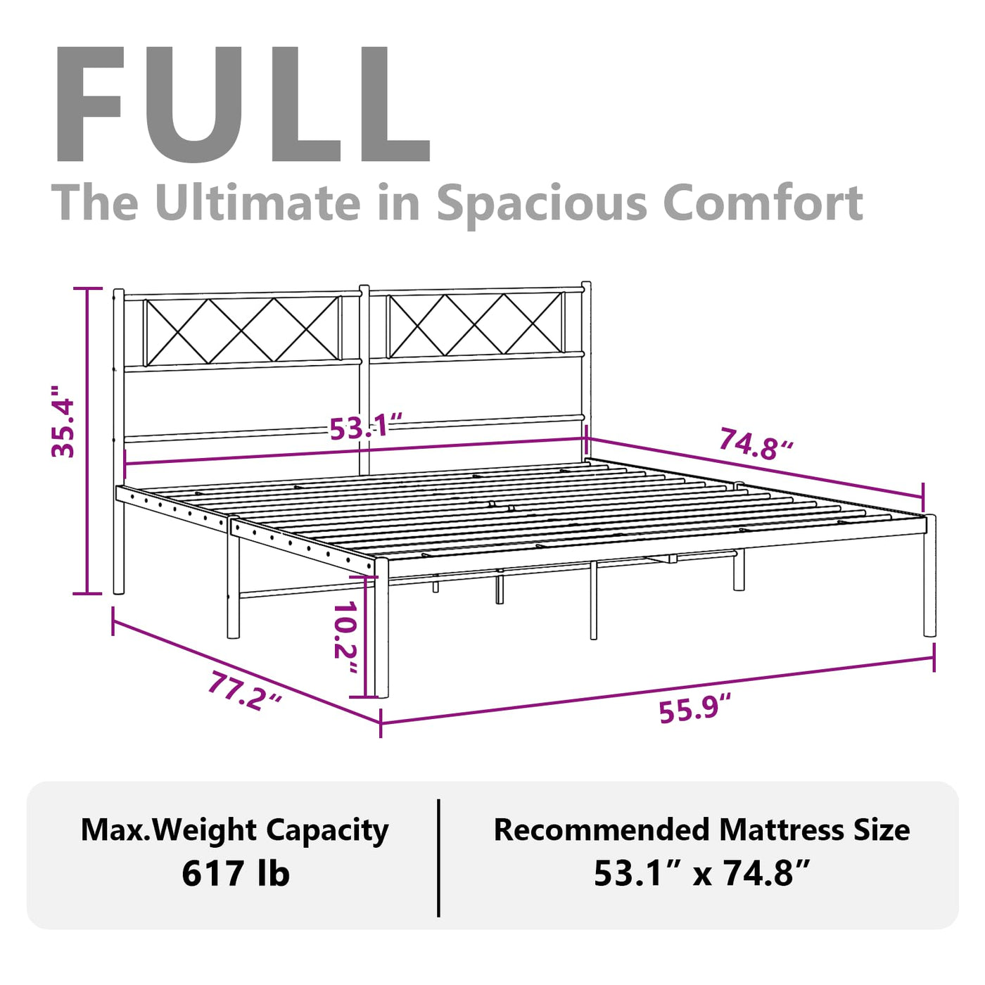 vidaXL 12'' Metal Full Bed Frames with Headboard, Platform Bed Frame with Strong Metal Slats Support, Under Bed Storage, Noise Free, Black, Without Mattress