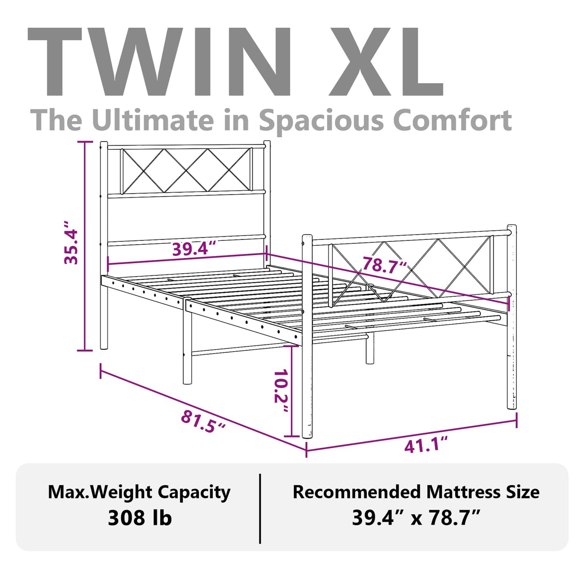 vidaXL 12'' Metal Twin XL Bed Frames with Headboard and Footboard, Platform Bed Frame with Strong Metal Slats Support, Under Bed Storage, Noise Free, Black, Without Mattress