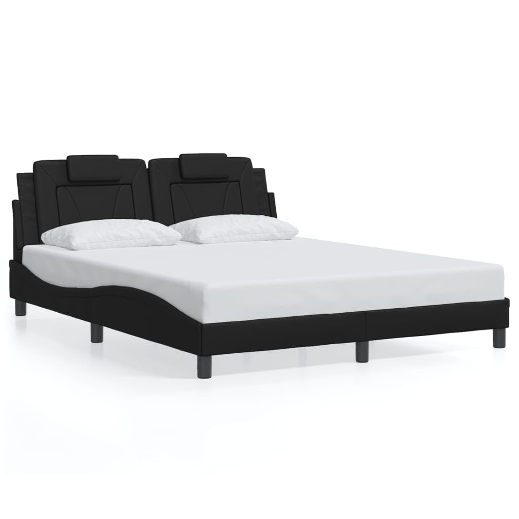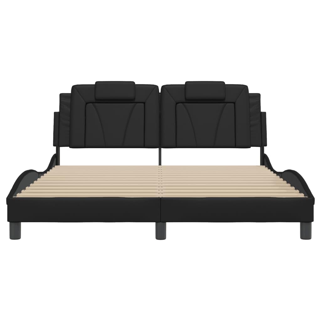 vidaXL Bed Frame with Headboard - Faux Leather Queen - 60" x 80" - Plywood Slats - Foam Headboard Cushion - Wave Design