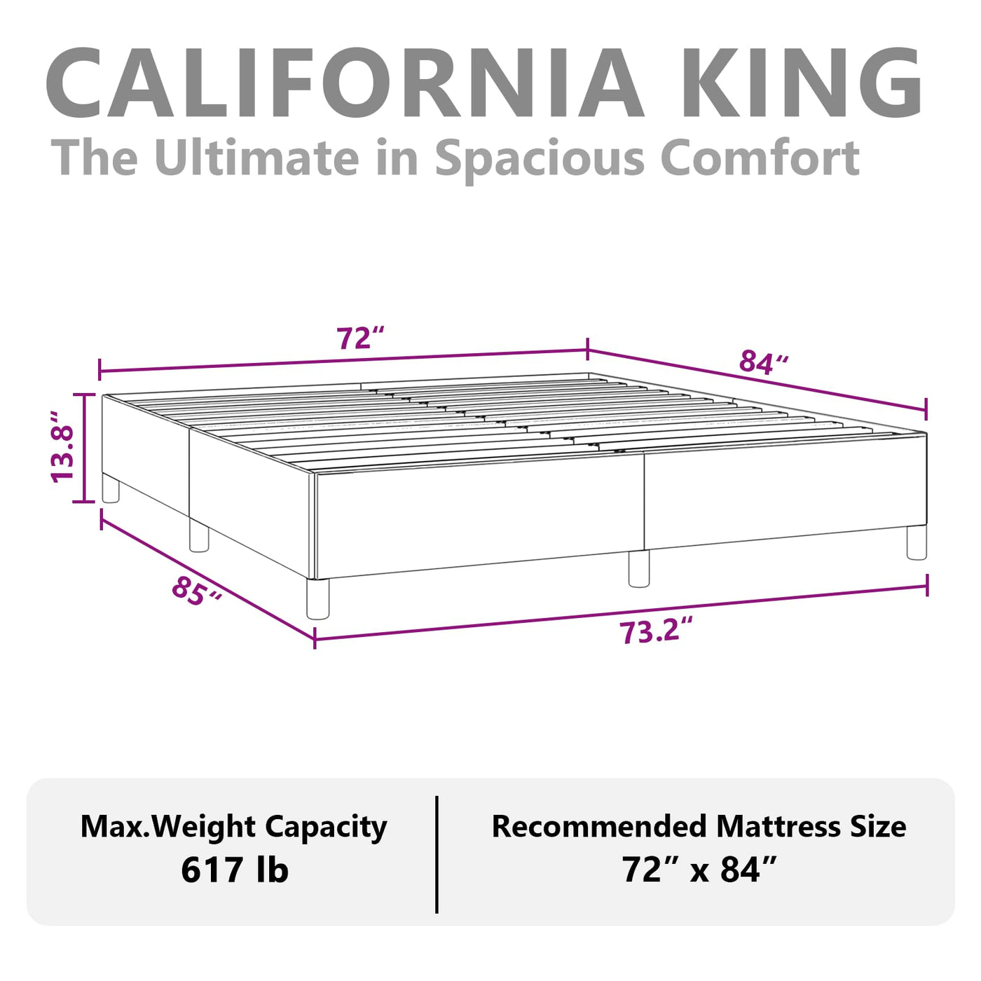 vidaXL California King Size Bed Frame with Plywood Slats, Platform Bed Frame, Faux Leather Upholstered Mattress Foundation, No Box Spring Needed & Easy Assembly, Black, Without Mattress