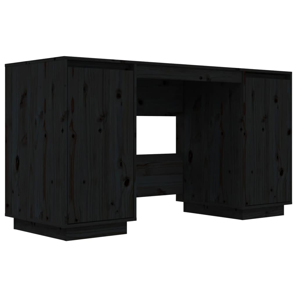 vidaXL Desk Black 55.1"x19.7"x29.5" Solid Wood Pine