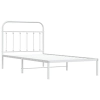 vidaXL Double Bed Frame in Elegant White - Robust Steel Construction with Center Support and Headboard, Under-Bed Storage, Mattress Size 53.1"x74.8"