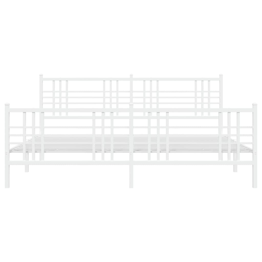 vidaXL Elegant King Metal Bed Frame with Headboard and Footboard in White - Steel Double Bed Base for Bedroom, Easy Assembly, Storage Space