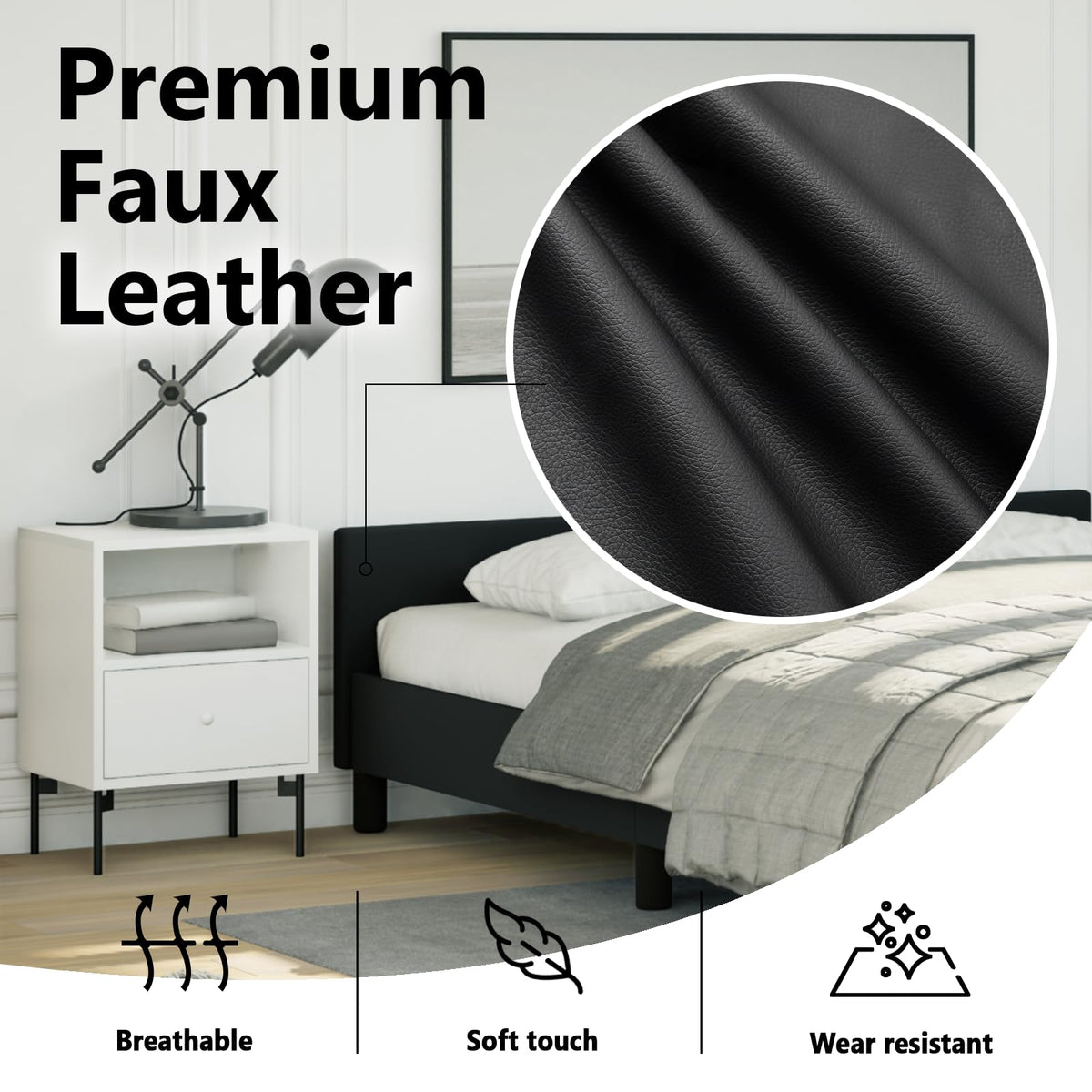 vidaXL Faux Leather Bed Frame Platform Bed, Scandinavian Style/Slats Support/No Box Spring Needed/Without Mattress/Easy Assembly, Black Full Bed