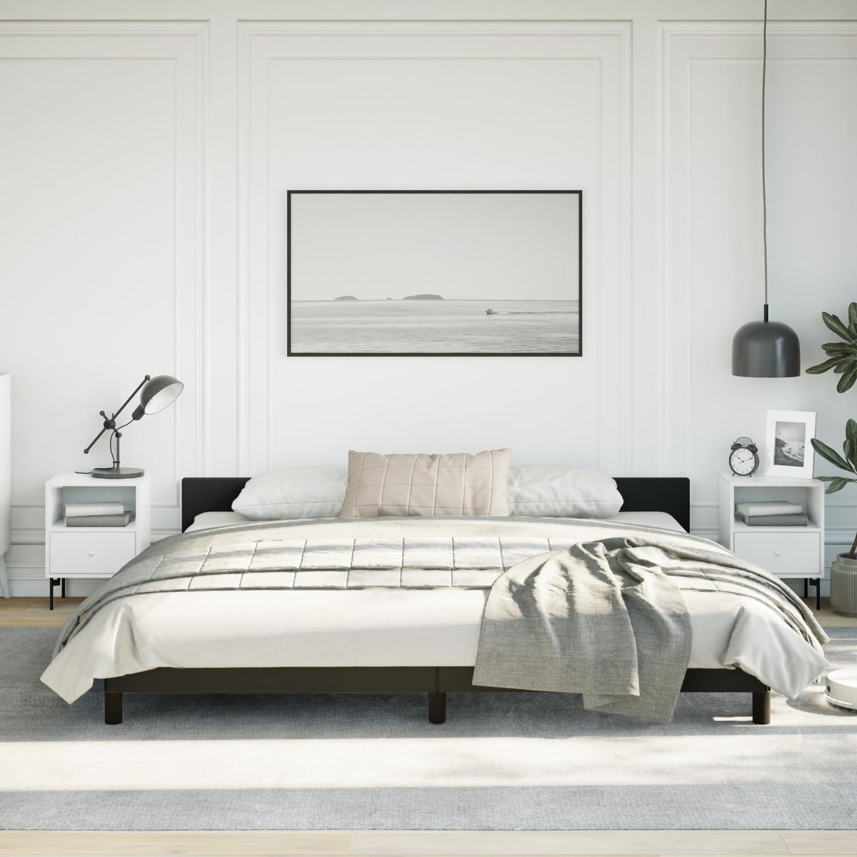 vidaXL Faux Leather Bed Frame Platform Bed, Scandinavian Style/Slats Support/No Box Spring Needed/Without Mattress/Easy Assembly, Black King Bed