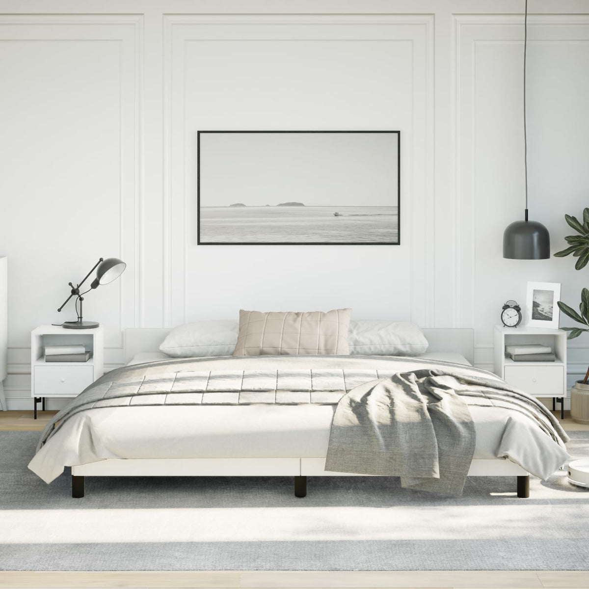 vidaXL Faux Leather Bed Frame Platform Bed, Scandinavian Style/Slats Support/No Box Spring Needed/Without Mattress/Easy Assembly, White California King Bed