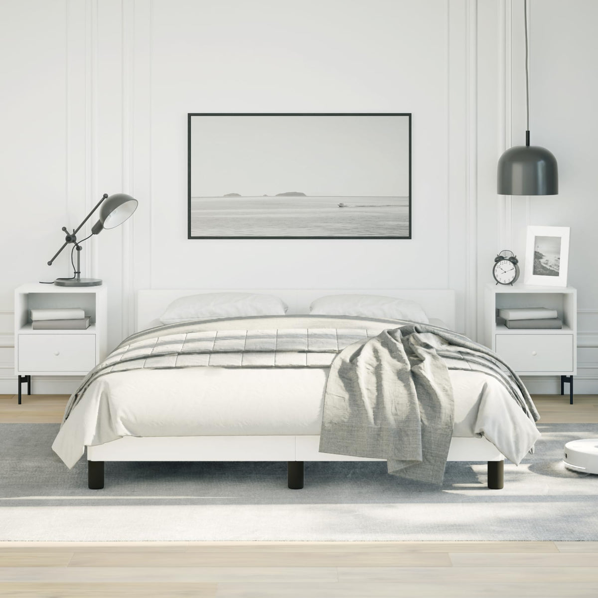vidaXL Faux Leather Bed Frame Platform Bed, Scandinavian Style/Slats Support/No Box Spring Needed/Without Mattress/Easy Assembly, White Full Bed
