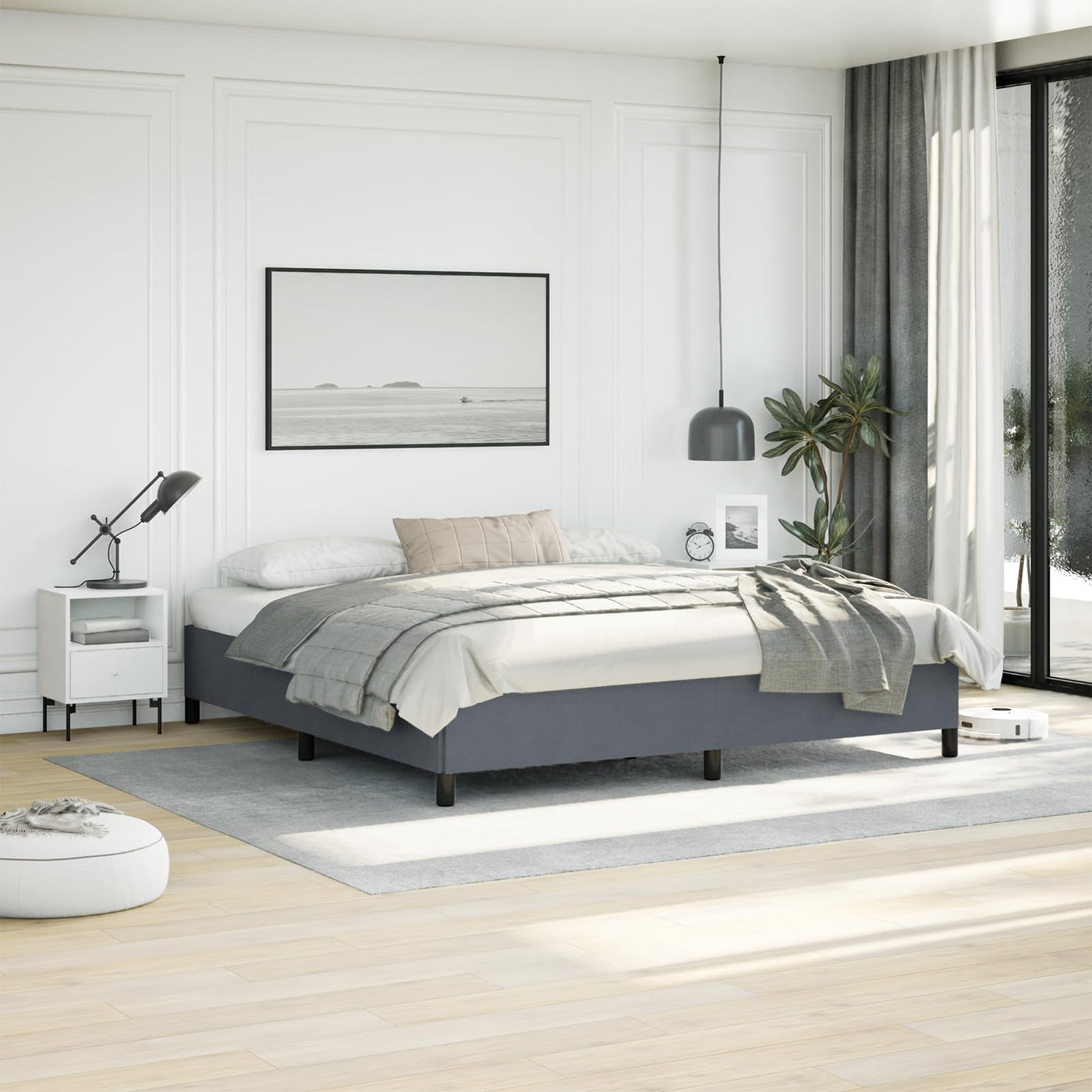 vidaXL King Size Bed Frame with Plywood Slats, Platform Bed Frame, Velvet Upholstered Mattress Foundation, No Box Spring Needed & Easy Assembly, Dark Gray, Without Mattress