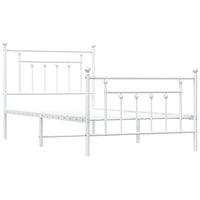 vidaXL Sturdy Metal Bed Frame with Headboard and Footboard - White, Single Bed Perfect for Bedroom, Extra Storage Space, Industrial Style – 81.5" x 41.3" x 38.2"