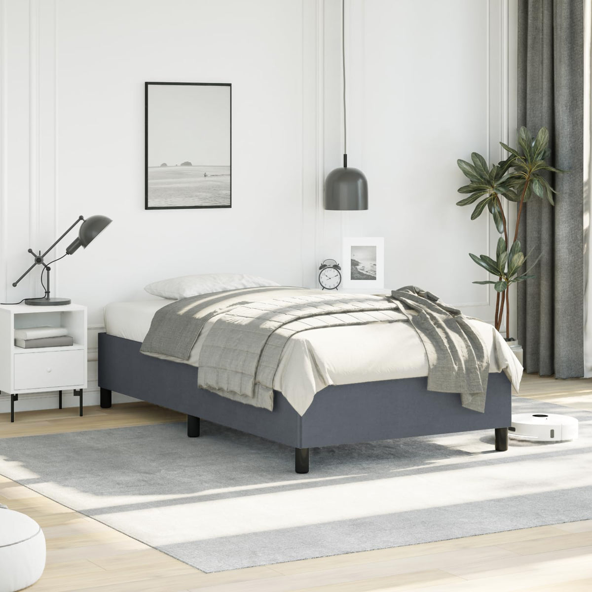vidaXL Twin Size Bed Frame with Plywood Slats, Platform Bed Frame, Velvet Upholstered Mattress Foundation, No Box Spring Needed & Easy Assembly, Dark Gray, Without Mattress