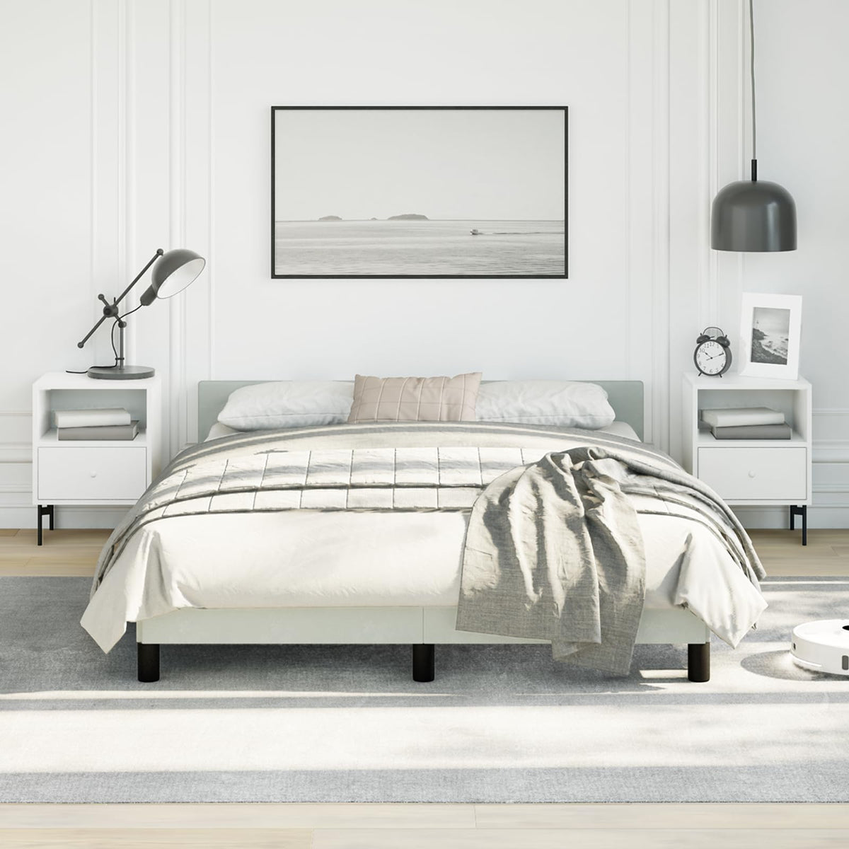 vidaXL Velvet Bed Frame Platform Bed, Scandinavian Style/Slats Support/No Box Spring Needed/Without Mattress/Easy Assembly, Light Grey Full Bed